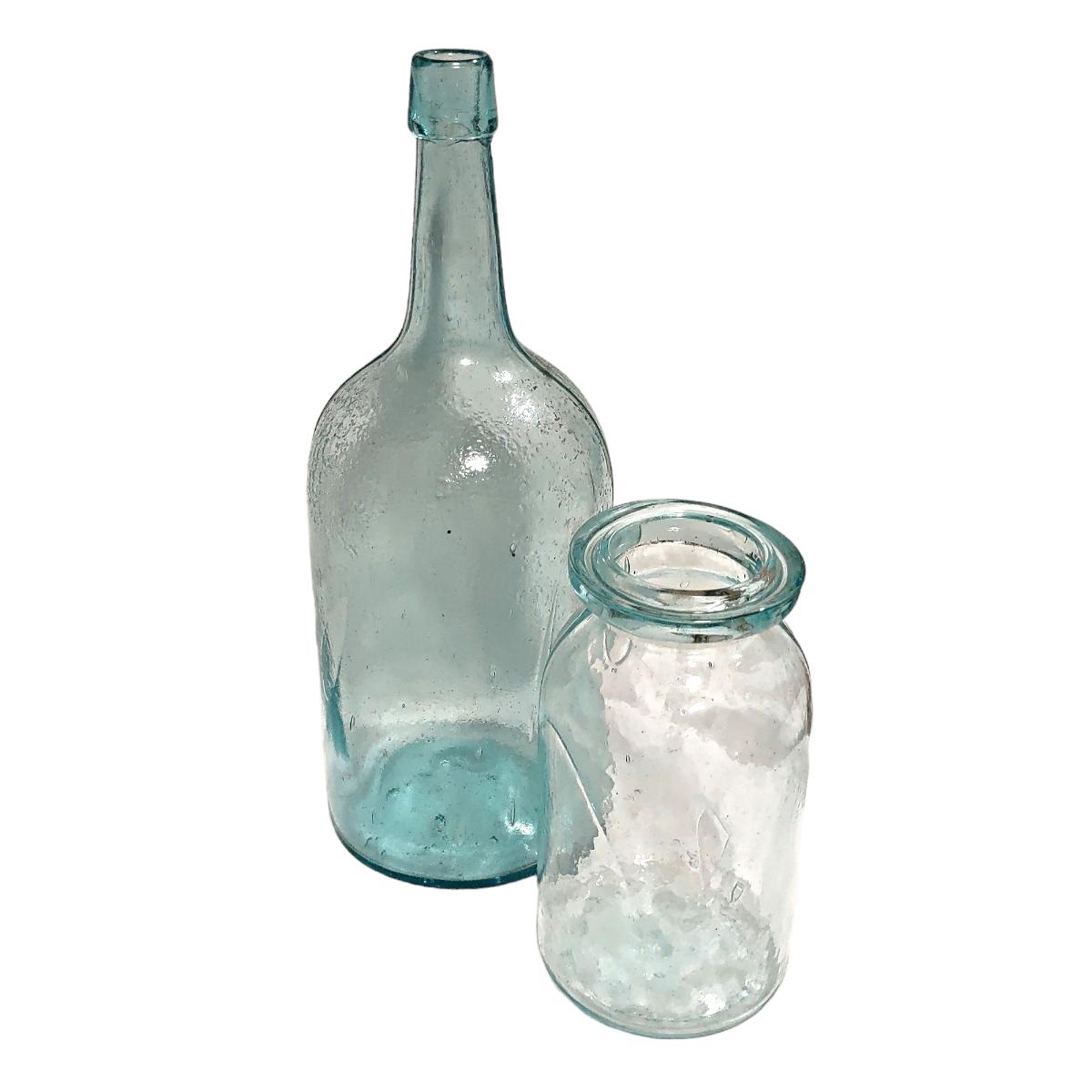 Antique/Vintage Aqua Glass Cork Top Bottles