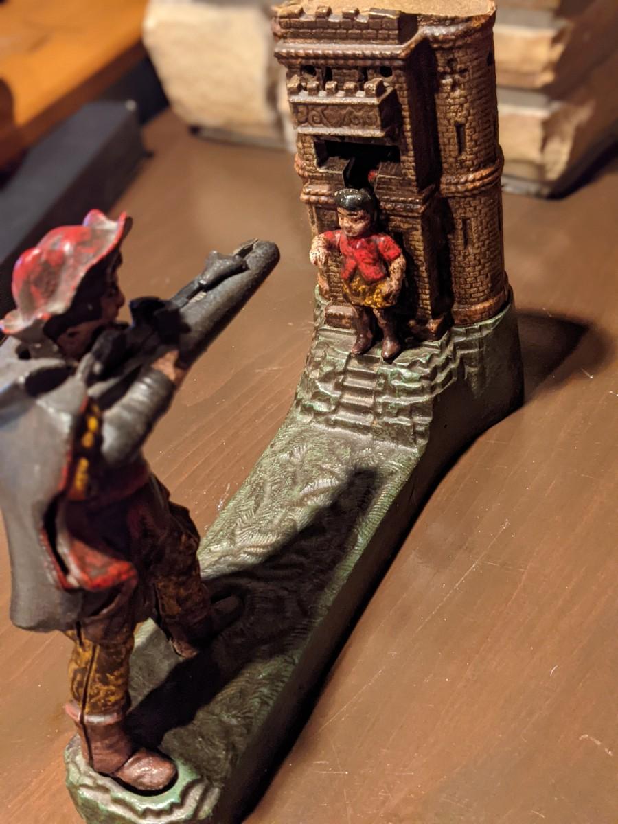 Antique/Vintage Cast Iron Mechanical William Tell Money Box Bank