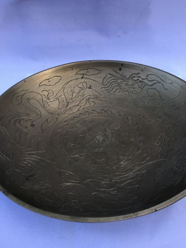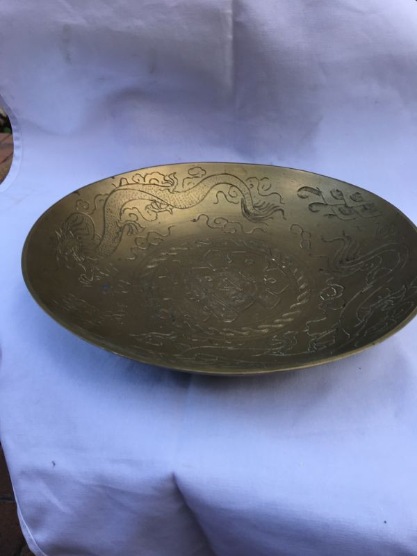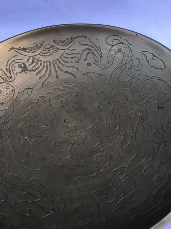 Antique/Vintage Chinese Large Etched Brass Bowl