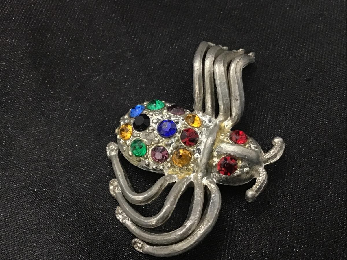 Antique/Vintage Multi Color Spider/Bug Pin Brooch