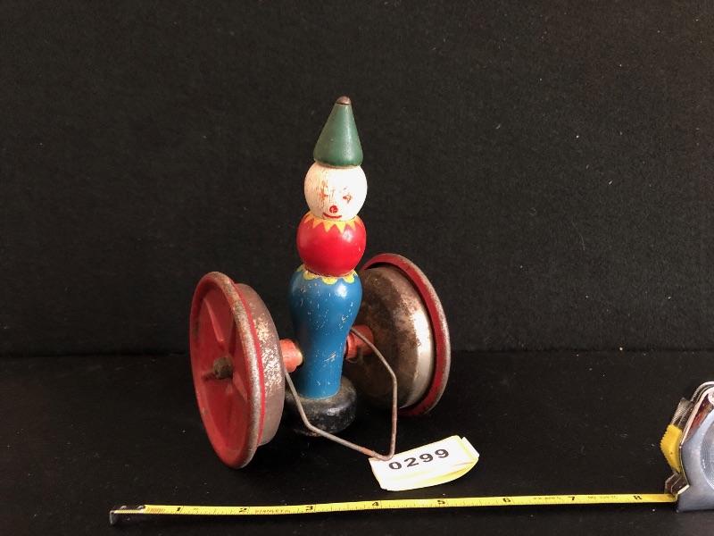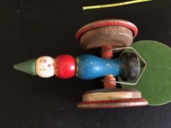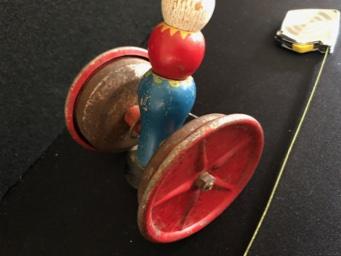 Antique Vintage Wooden Clown Wheelie Pull-Toy