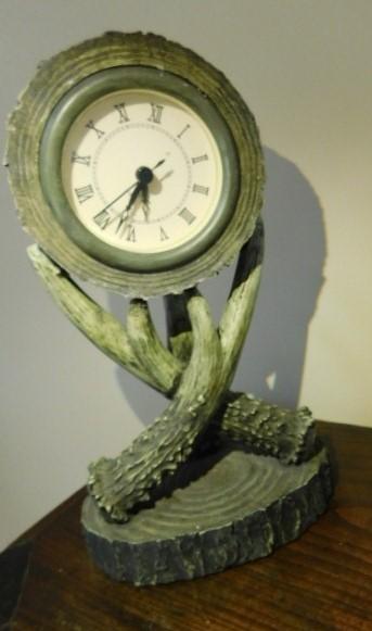 Antler and Log Cut Out Desk Clock Resin 10"x8"