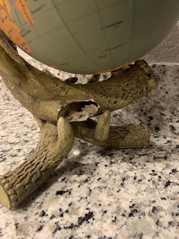 There is an antler missing but does not effect the function of this stand. Very cool and rare spinning globe