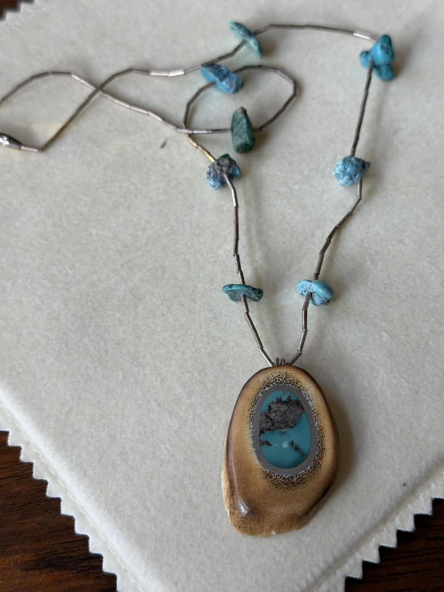 ANTLER with Inlaid Turquoise Stone Necklace