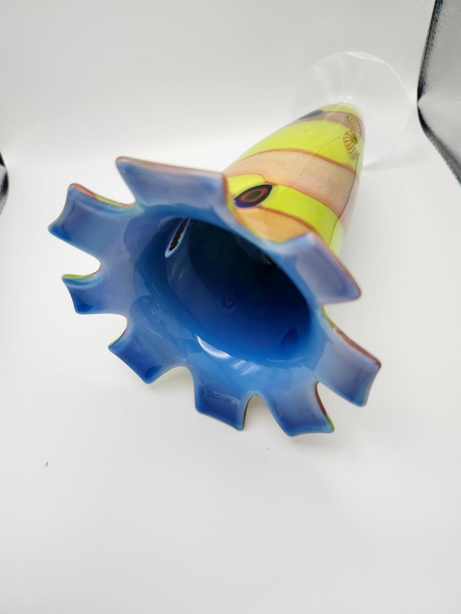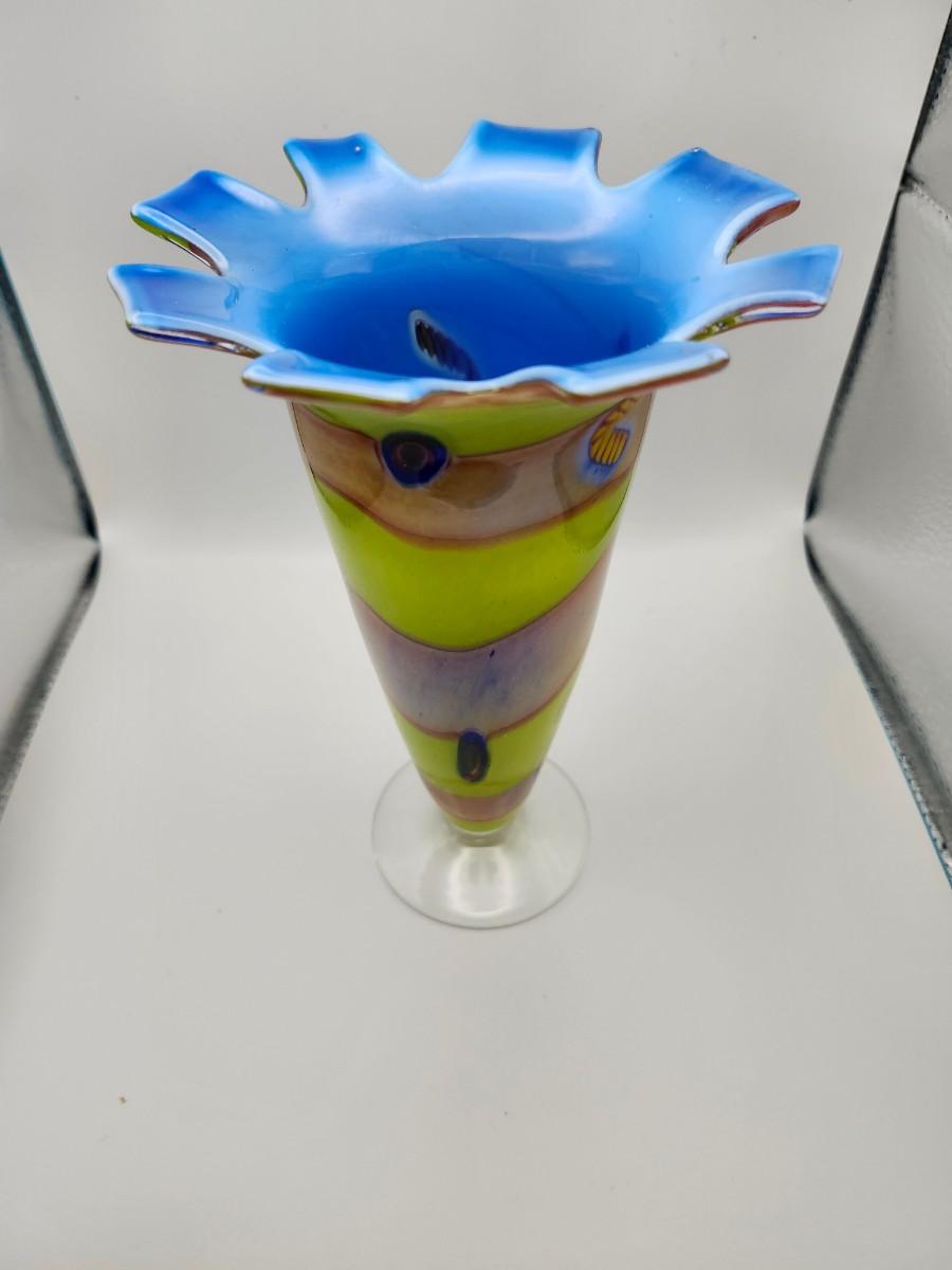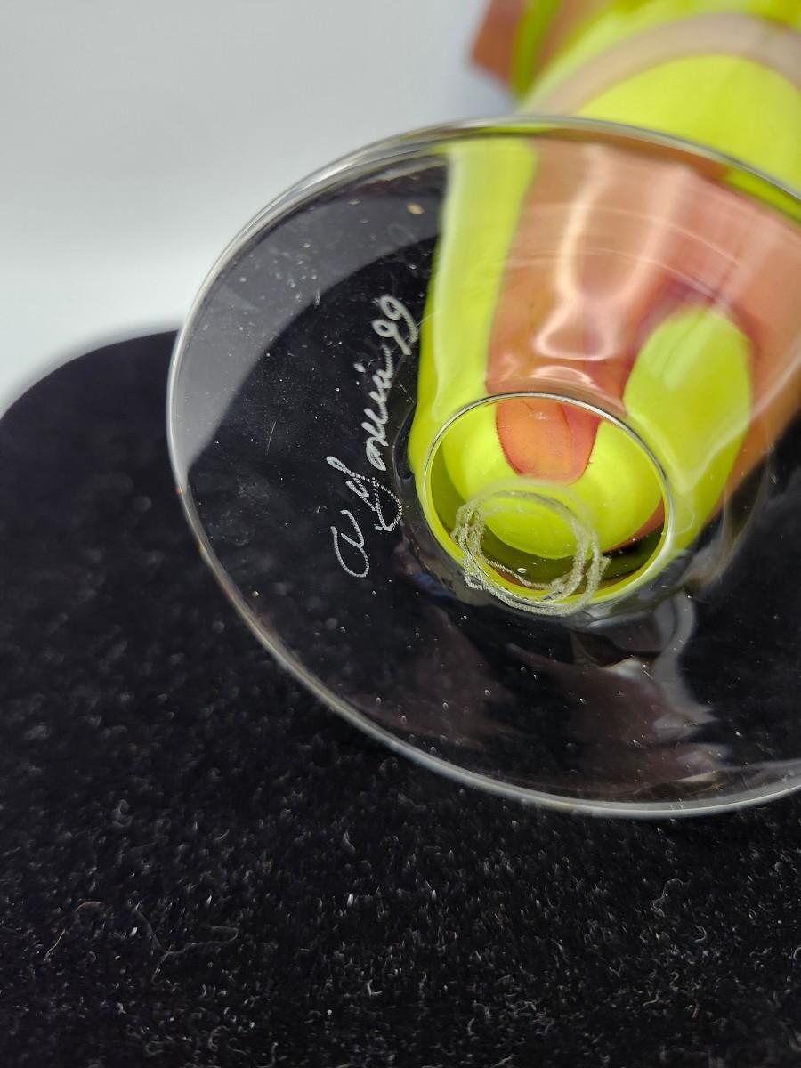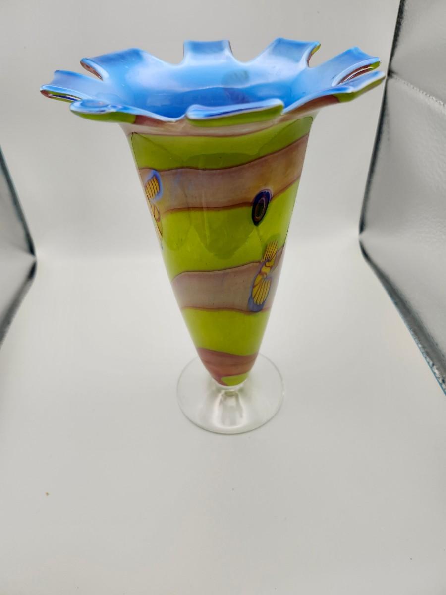 Beautiful blown glass vase with millifiore spots, signed A. Gates 1999.