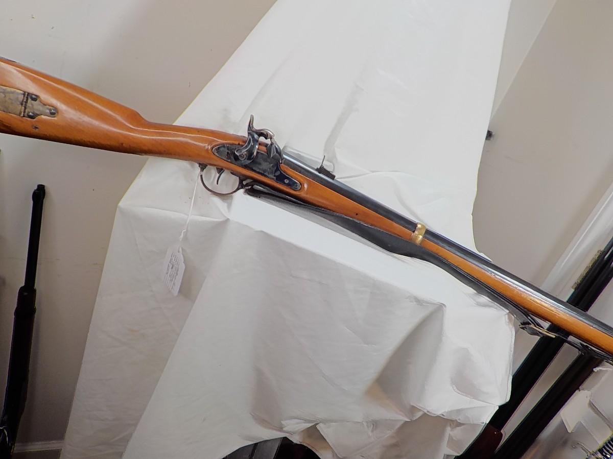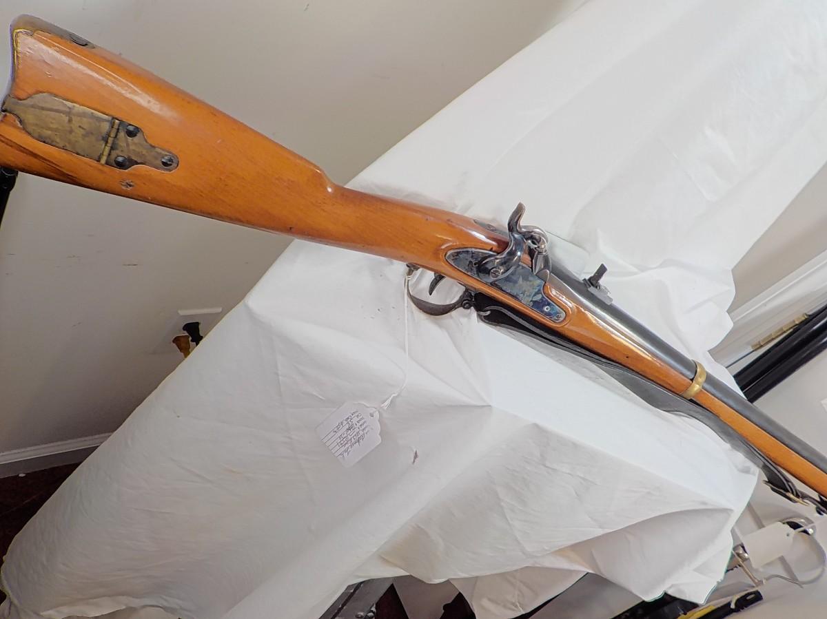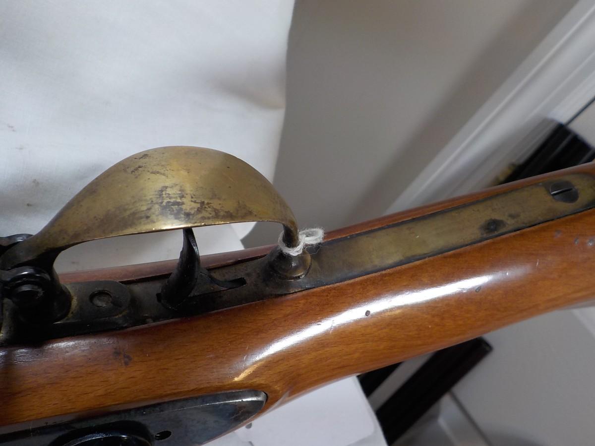This is a repro of the Italian " Zouave, stock clean and sloid barrel is smooth and clean of patina. Cool looking Muzzleloaders. Good accuracy with mini balls and 54 grains of French PNF black powder one shot at 50 yards bulls eye