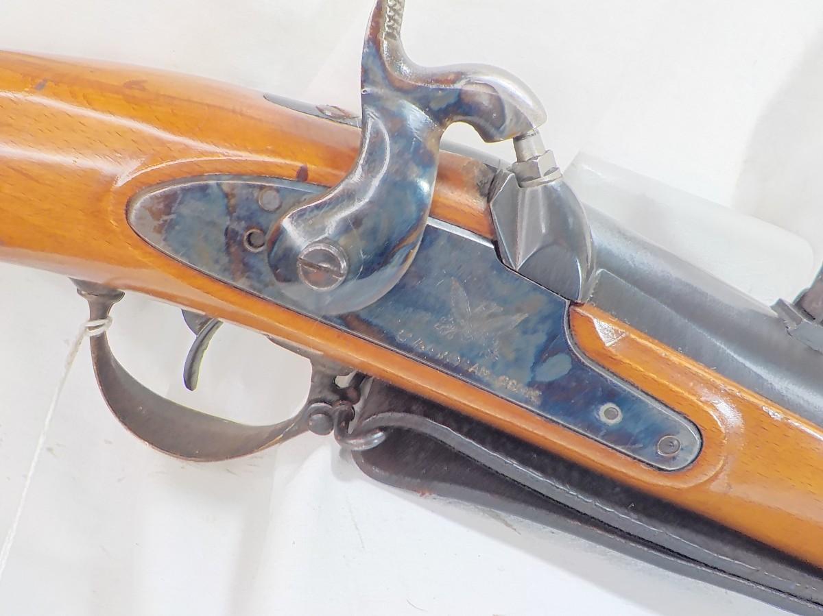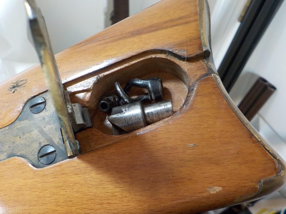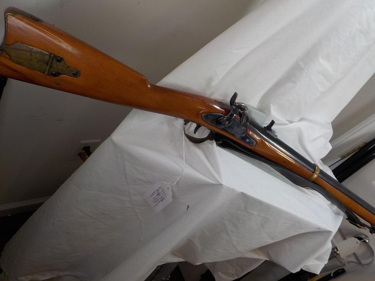 This is a repro of the Italian " Zouave, stock clean and sloid barrel is smooth and clean of patina. Cool looking Muzzleloaders. Good accuracy with mini balls and 54 grains of French PNF black powder one shot at 50 yards bulls eye