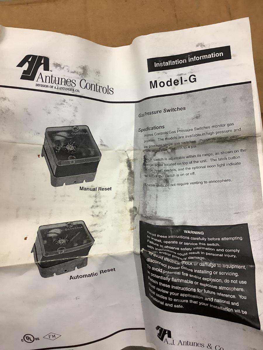 Antunes Controls Model -G Gas Pressure Switch NIB