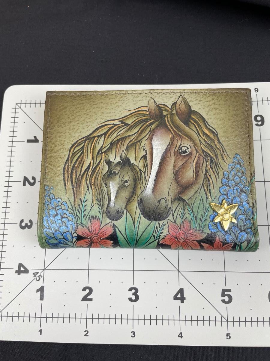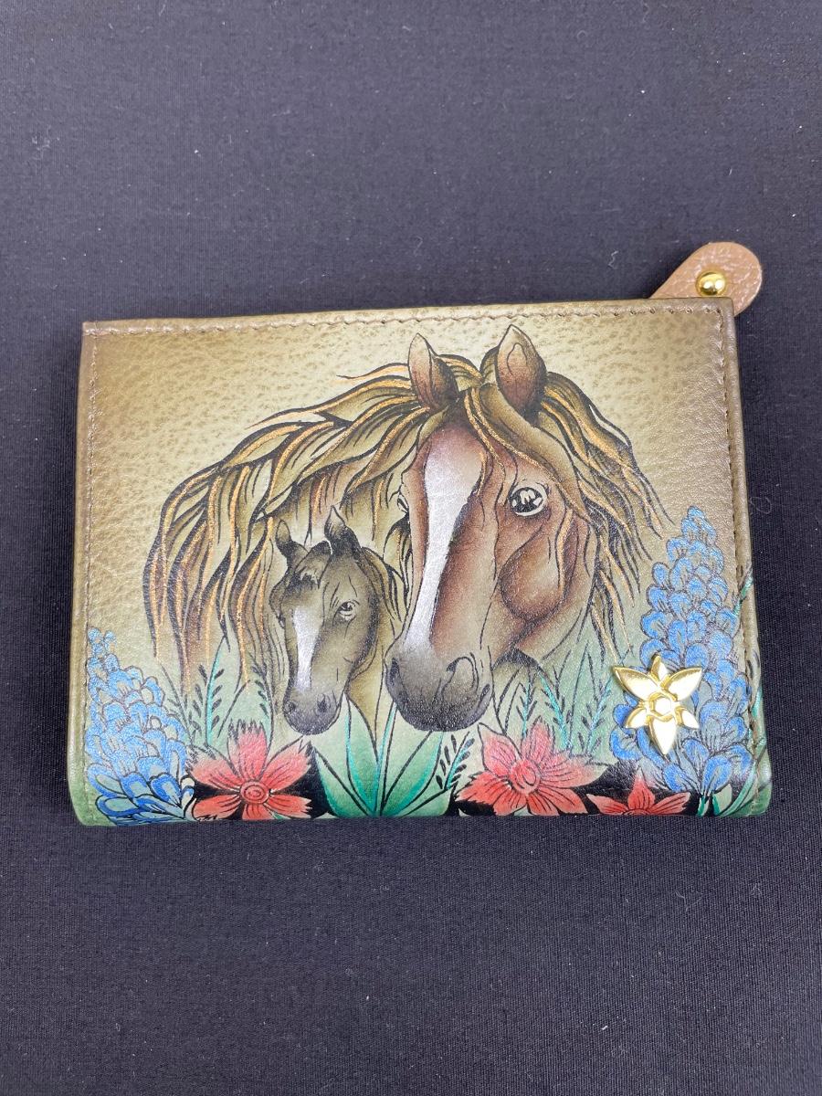 Anuschka Hand Painted Leather Wallet Horses