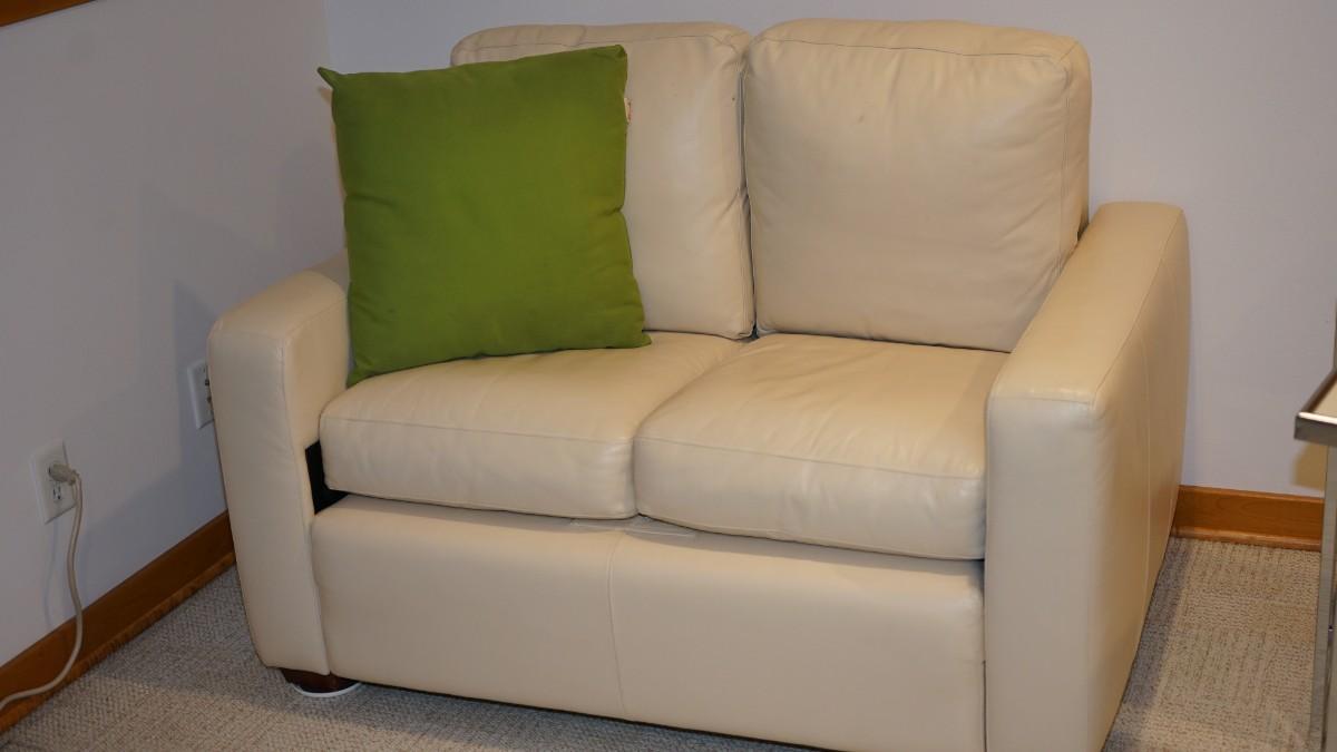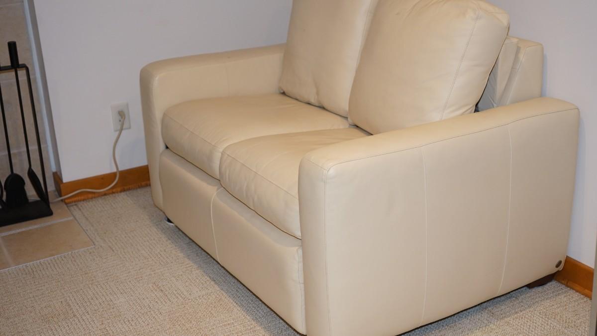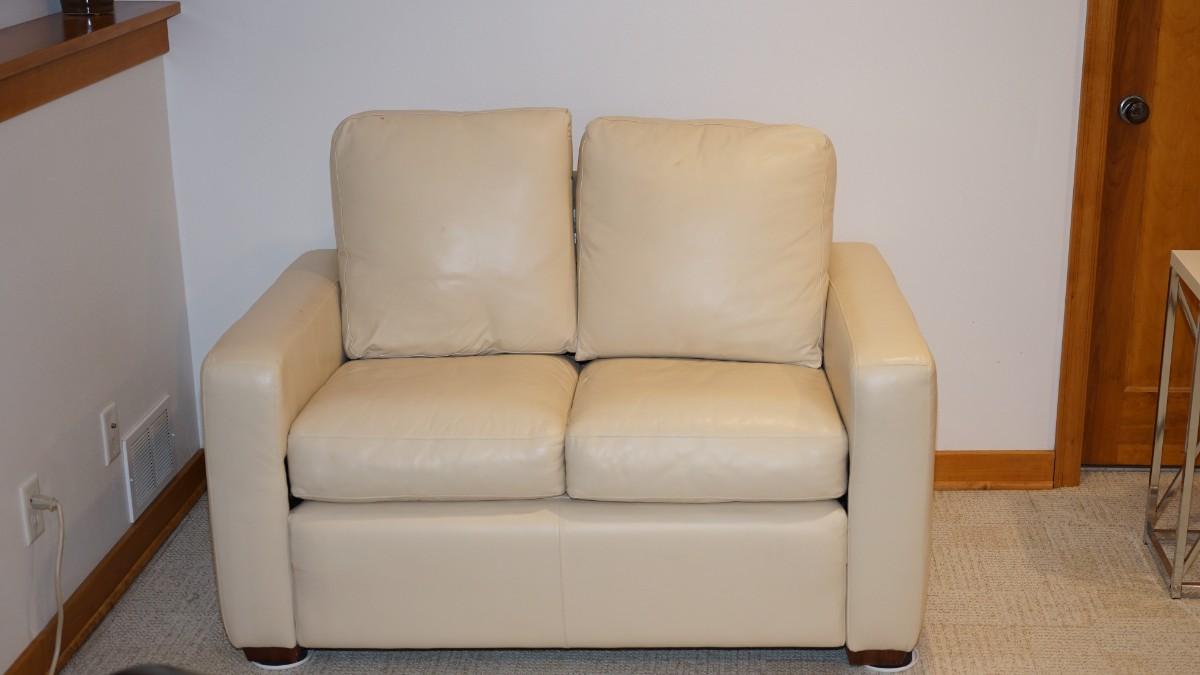 APARTMENT SIZE IVORY COLORED LEATHER TWO SEAT SOFA SLEEPER