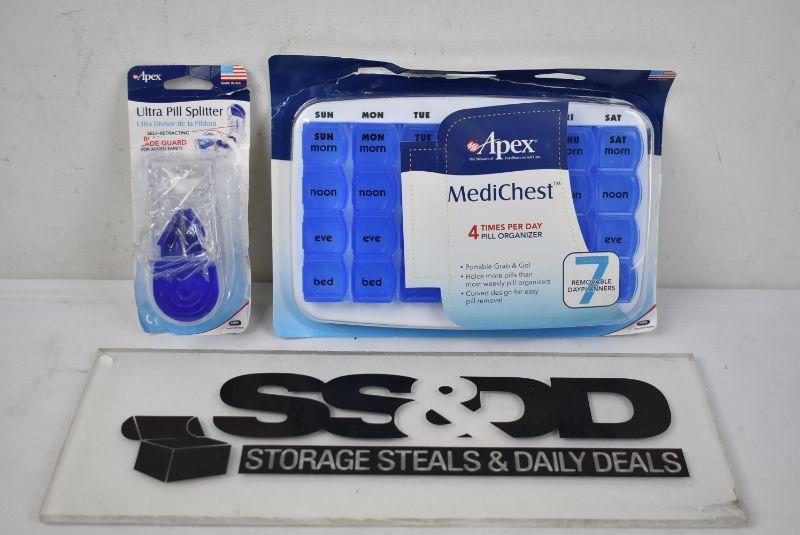 Apex Medichest - 4/Day, 7 Days/Week Medication Planner AND Ultra Pill Splitter
