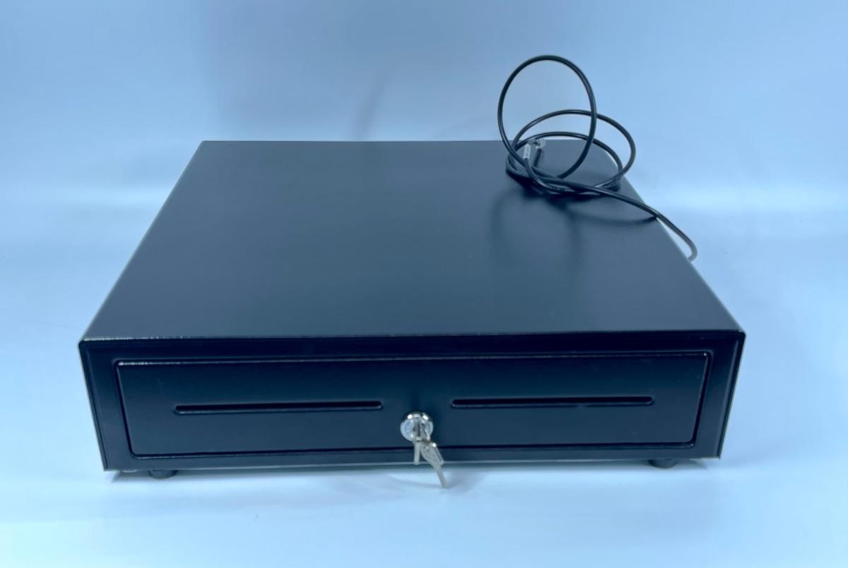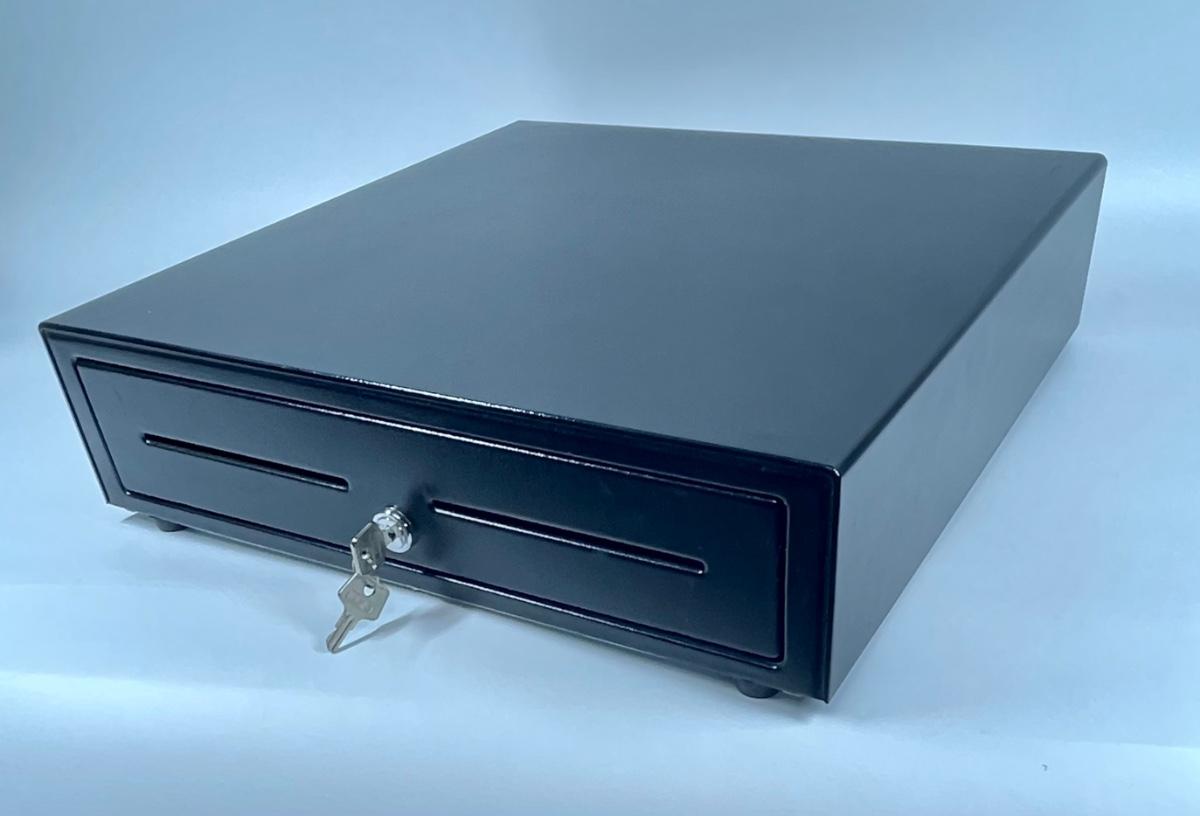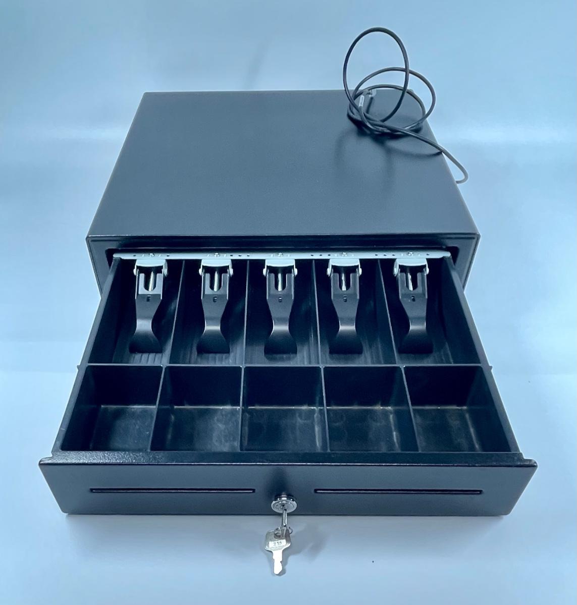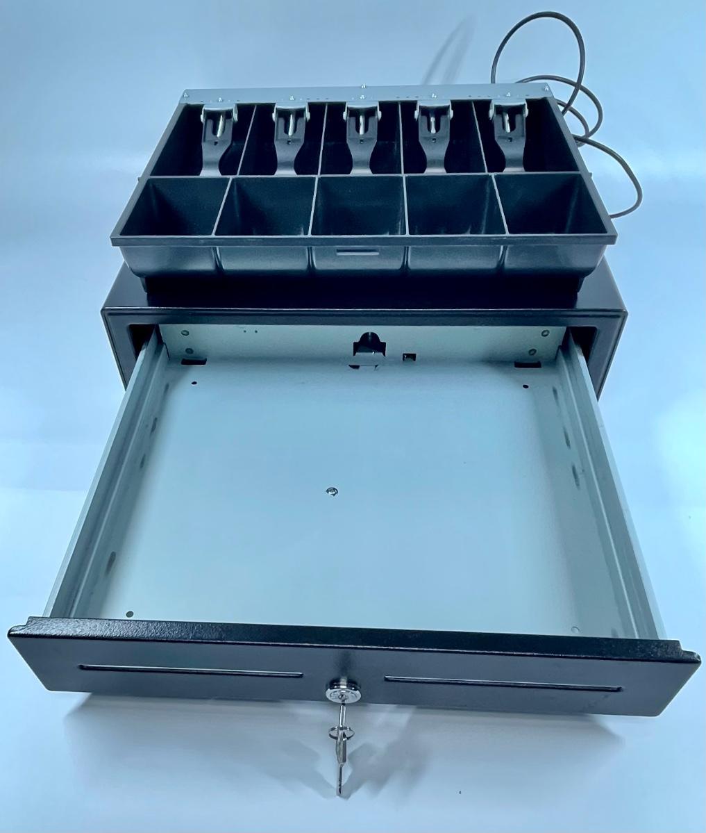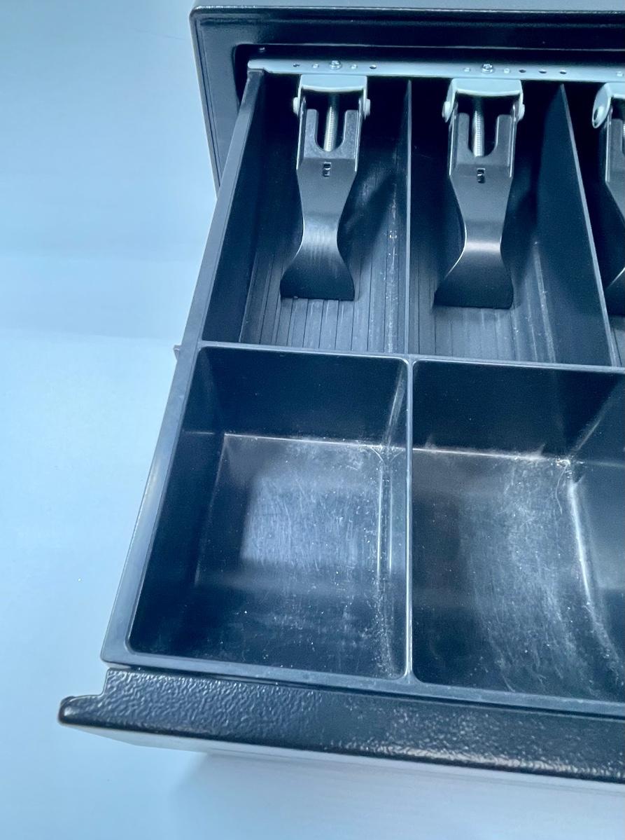 Cash drawer, new new condition. No scratches, dents or rust. Painted black steel.