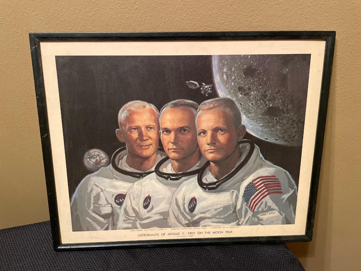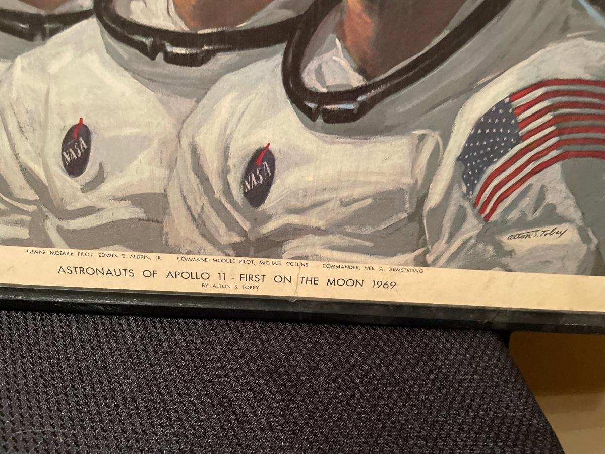 Framed Poster board-Astronauts of Apollo II first on the moon 1969