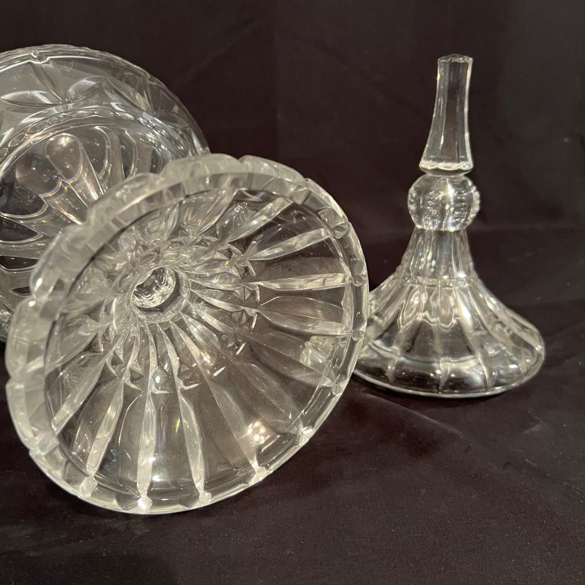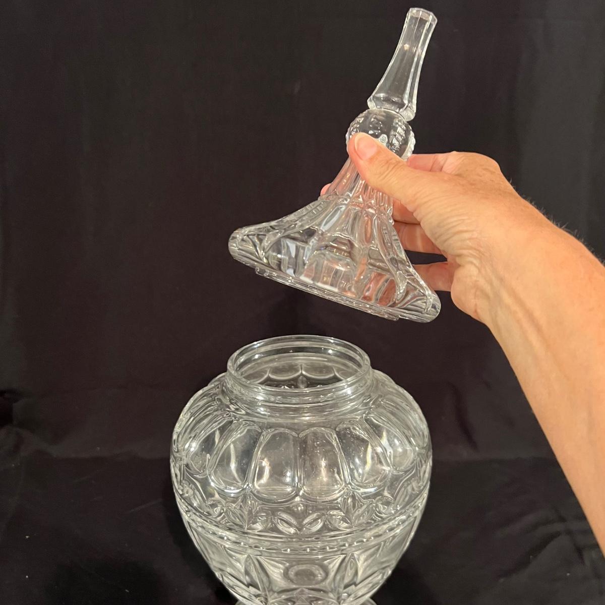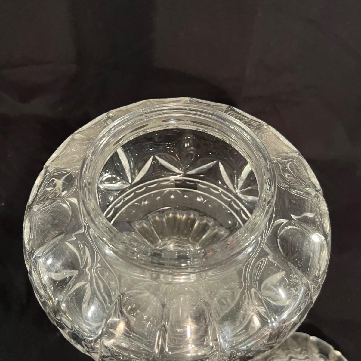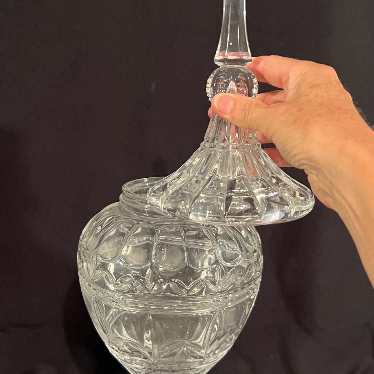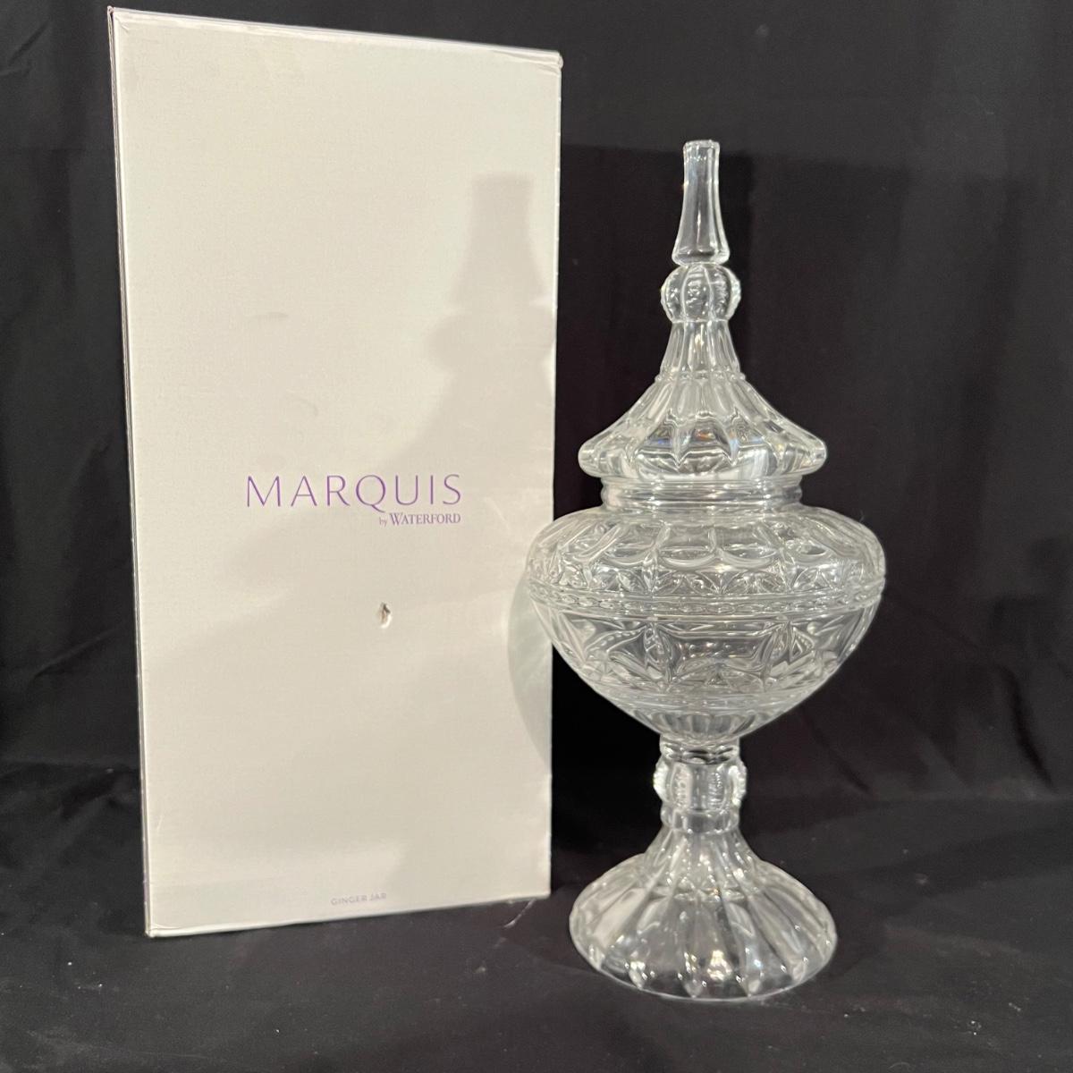 Two ginger and one apothecary jars, all Waterford crystal. Tallest jar measures 7”D (base) x 22”H. Boxes are included; it appears these items were out of box and on display.