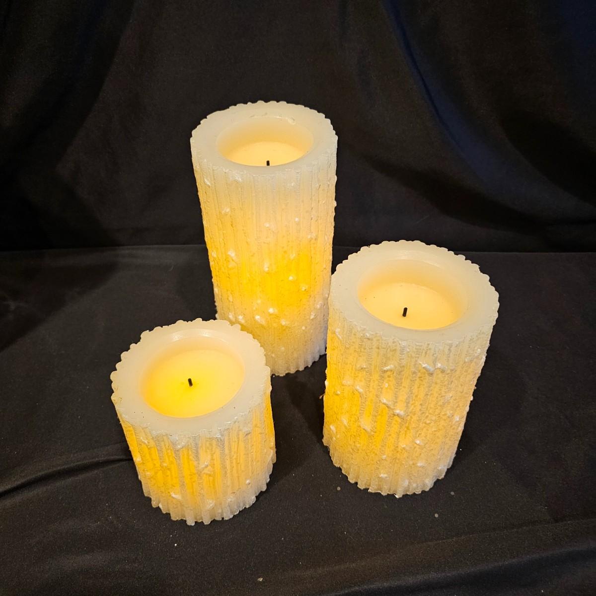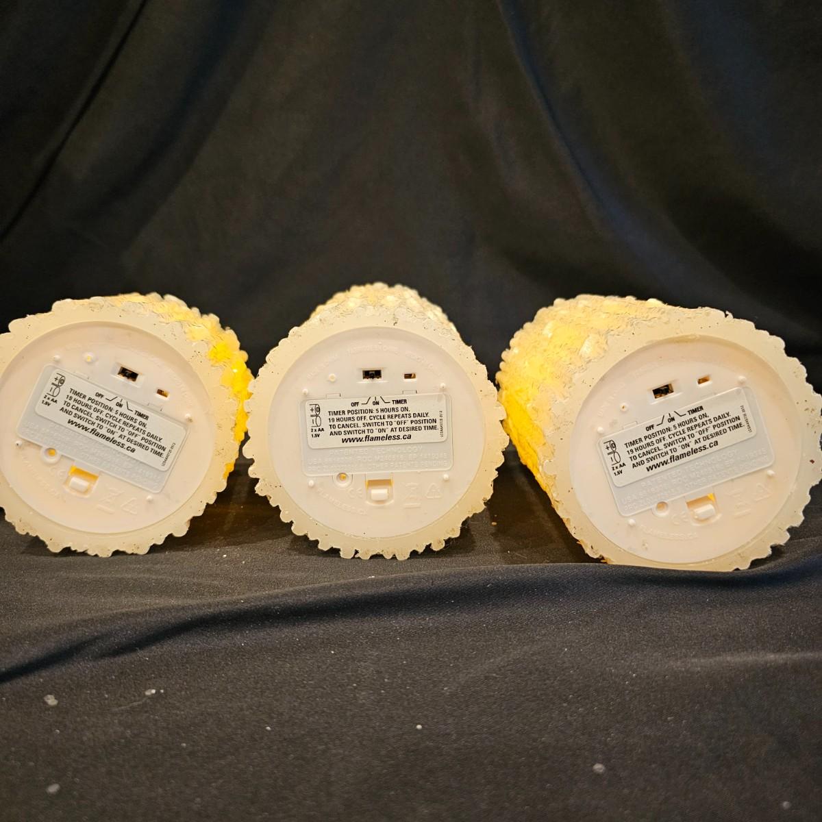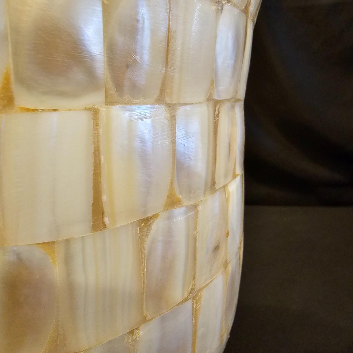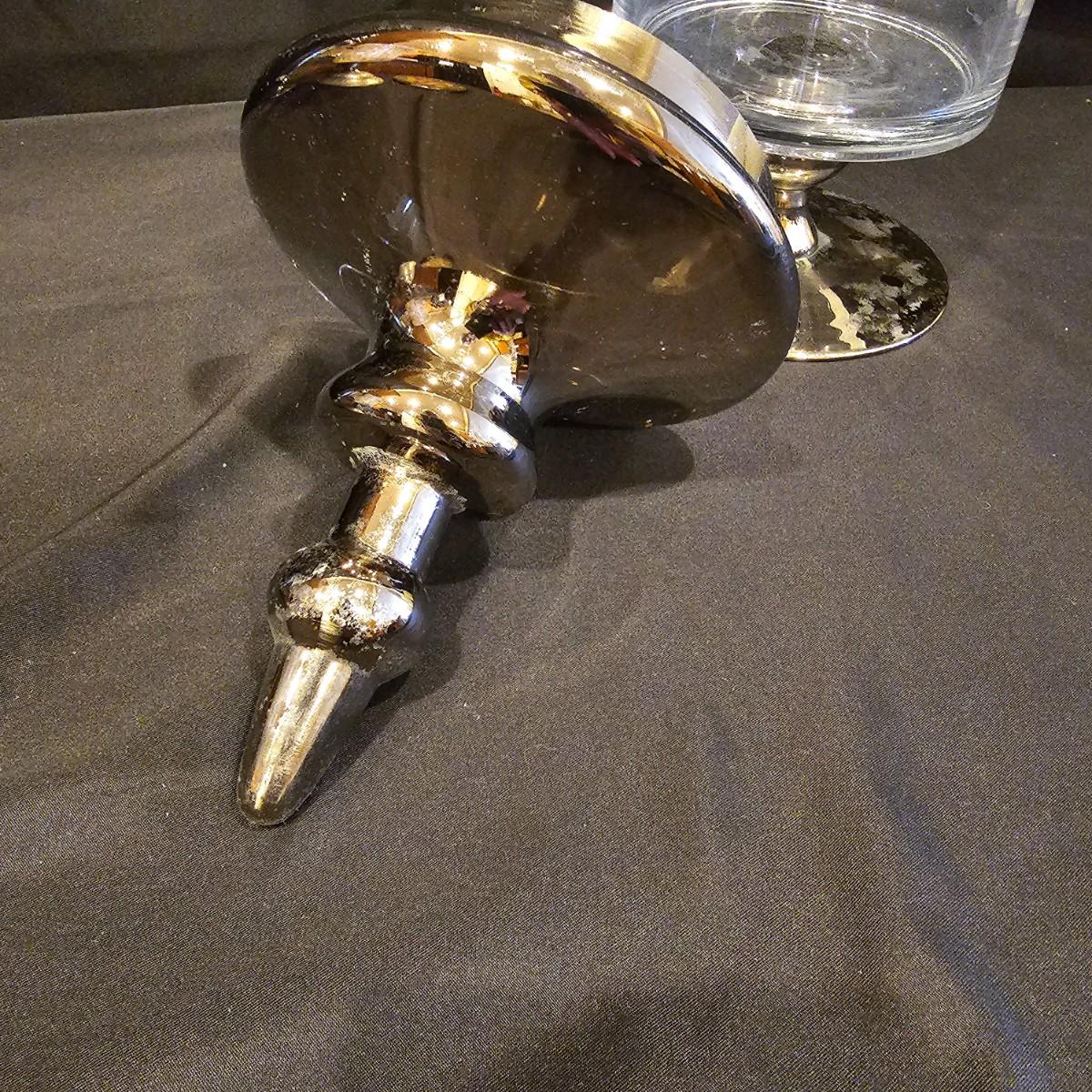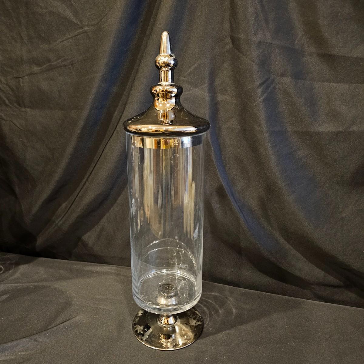 Two tall apothecary jars with lids, three flameless candles, & more. The two jars measure 5.25"D each and are 17"H and 20"H. The candles are all 4"D and 4", 6", and 8"H. Battery operated and all powered on. The off white vase piece has a metal base and some type of shell covering on top. 7.25" x 11"H. The small 5.5" round candle holder is glass with a mosaic inlay top. See photos for details. Shipping available. Shipping can be costly. We suggest contacting our preferred local shipping provider, Postage Express, with dimensions and getting an estimate before bidding: (828) 670-5501 or postageexpress@yahoo.com.