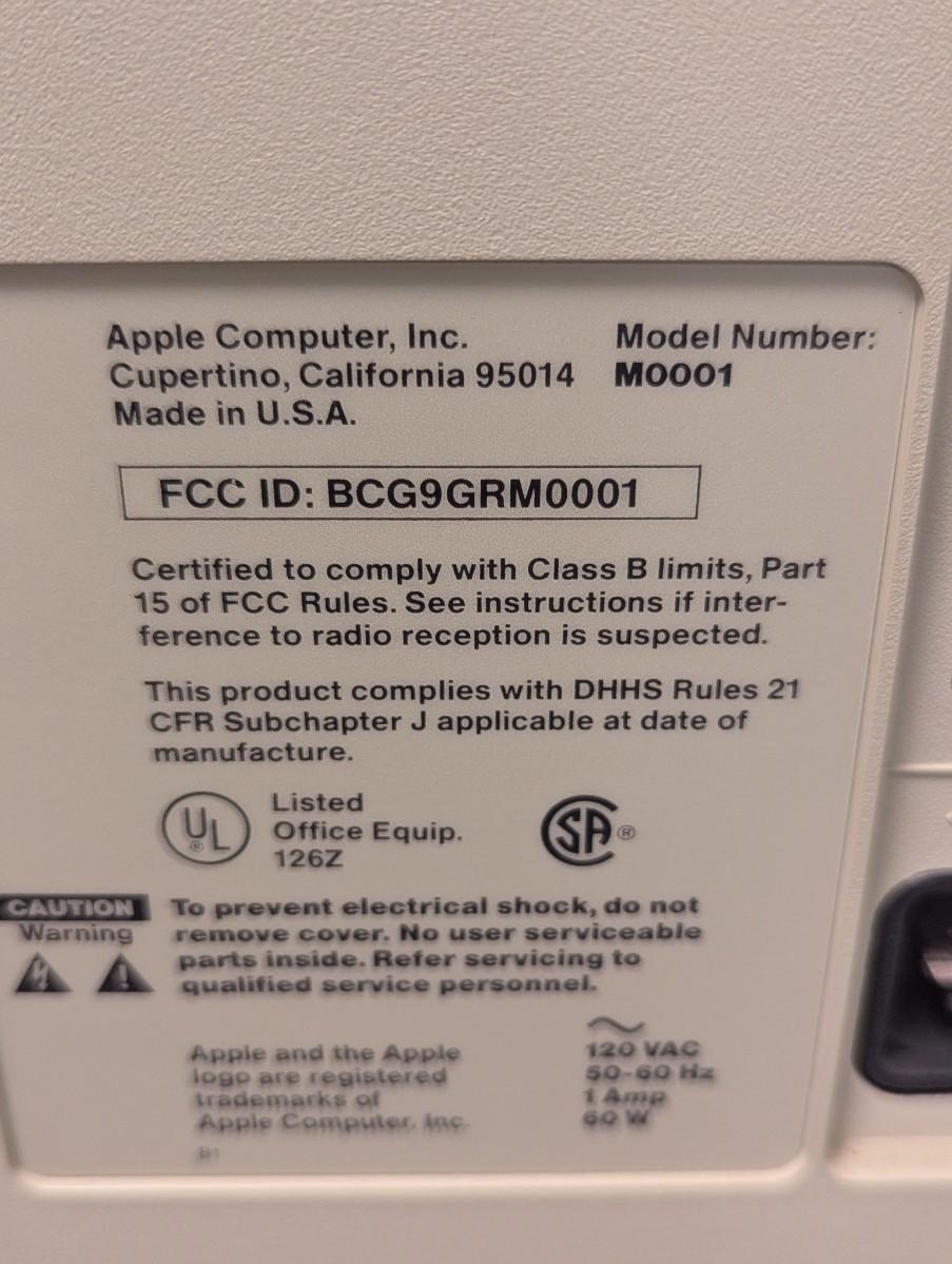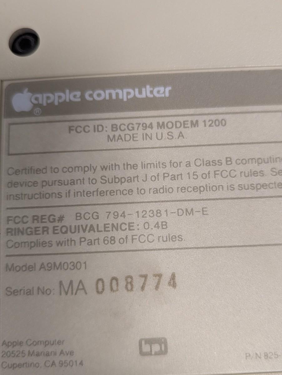Apple Computer Model # M0001 - Modem Model # A9M0301 BCG794 Modem 1200