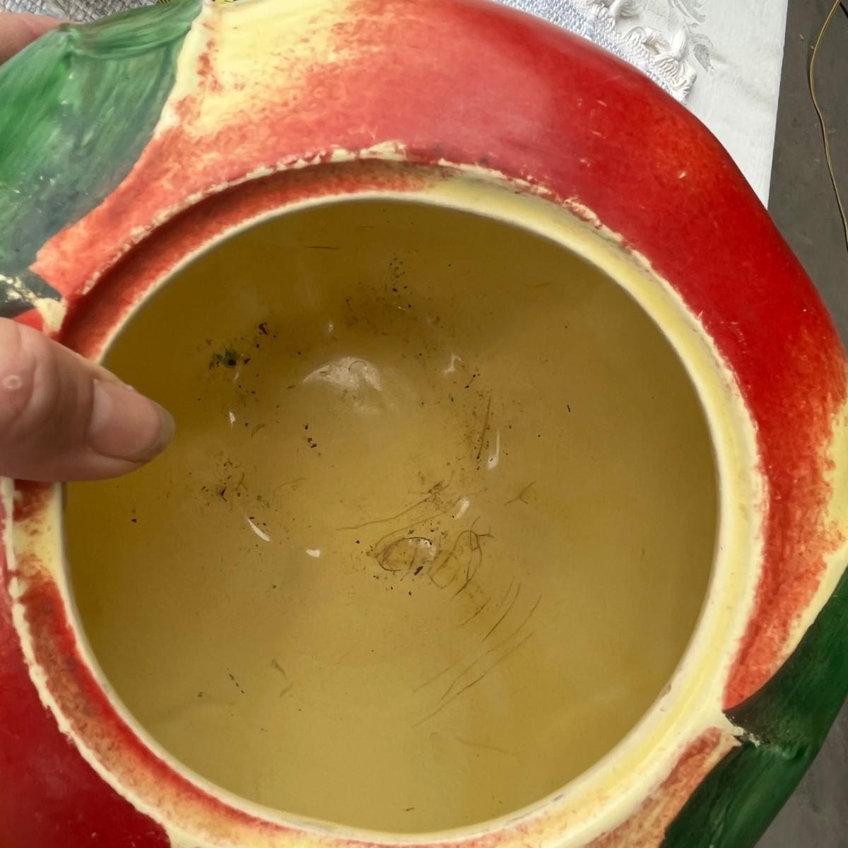 The red paint is a bit worn on the jar, a usual find. Great shape otherwise!