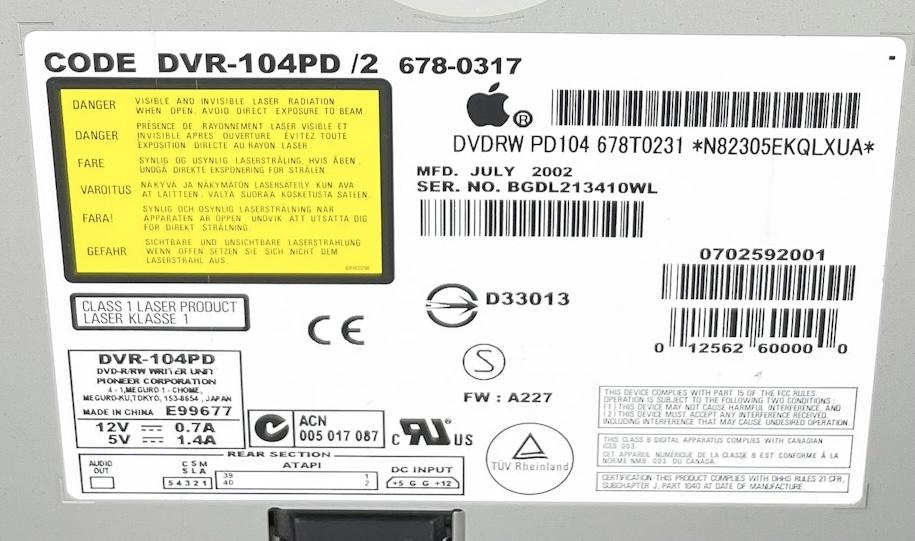 APPLE DVR-104PD REWRITABLE DVD DRIVE