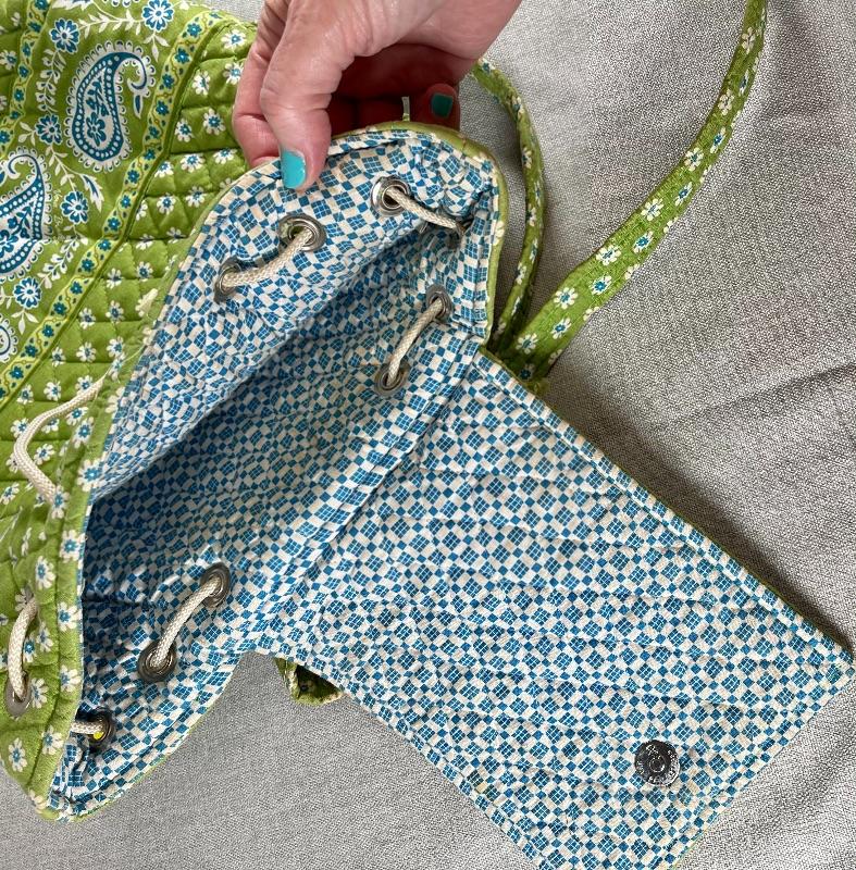 VERA BRADLEY APPLE GREEN Drawstring Back pack. Retired Pattern