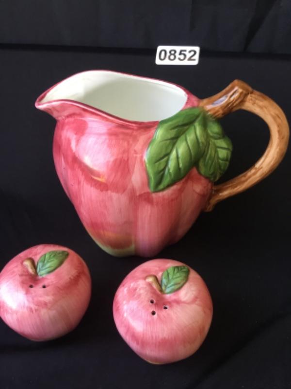 Apple Pitcher and Salt & Pepper shakers Lot 852 L