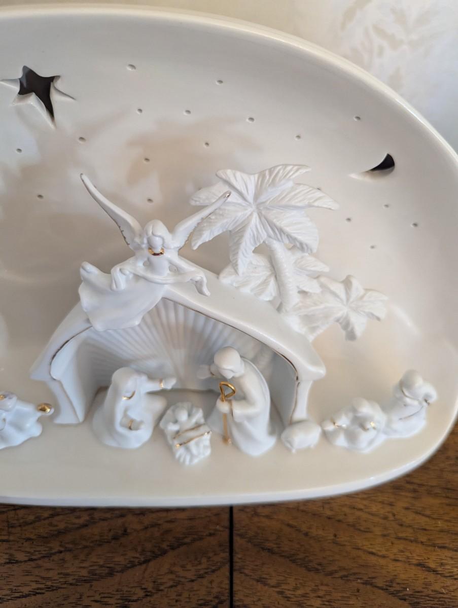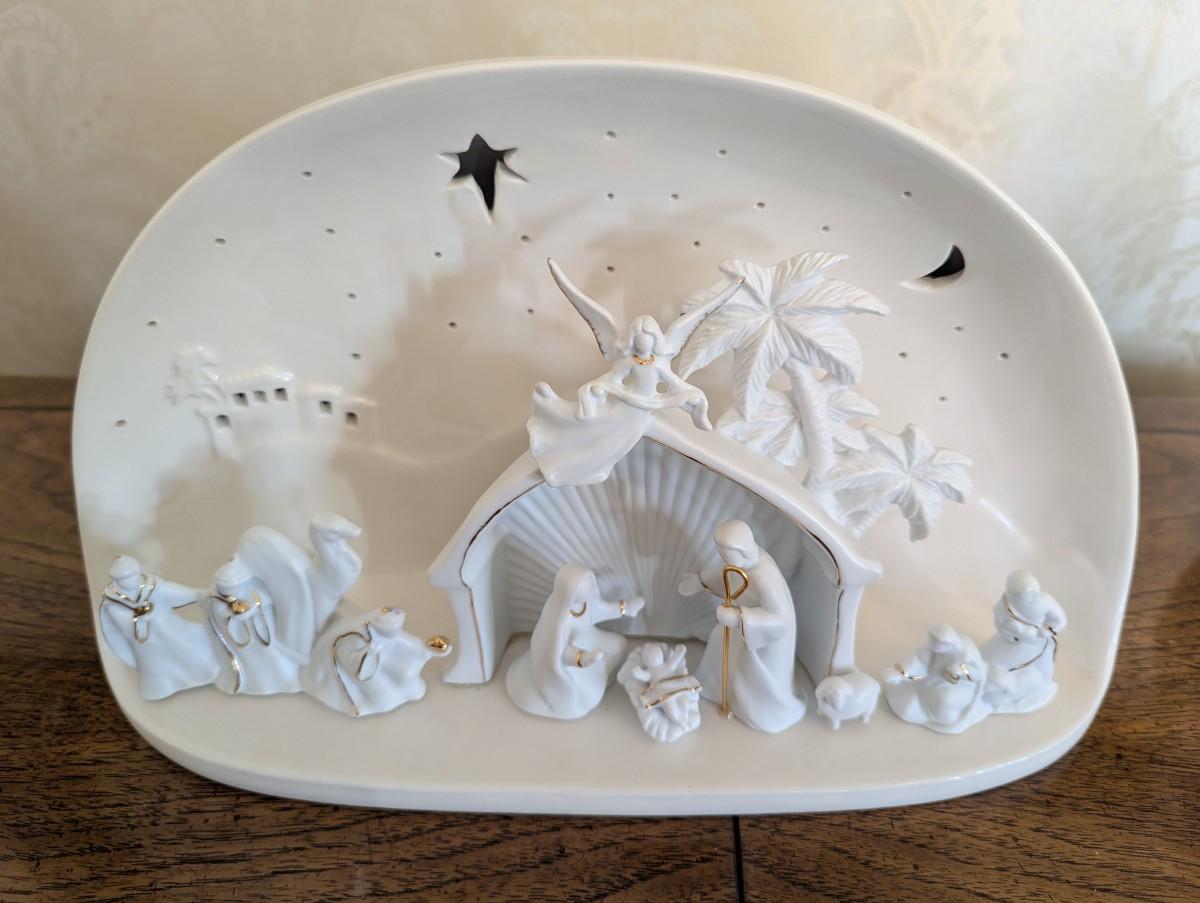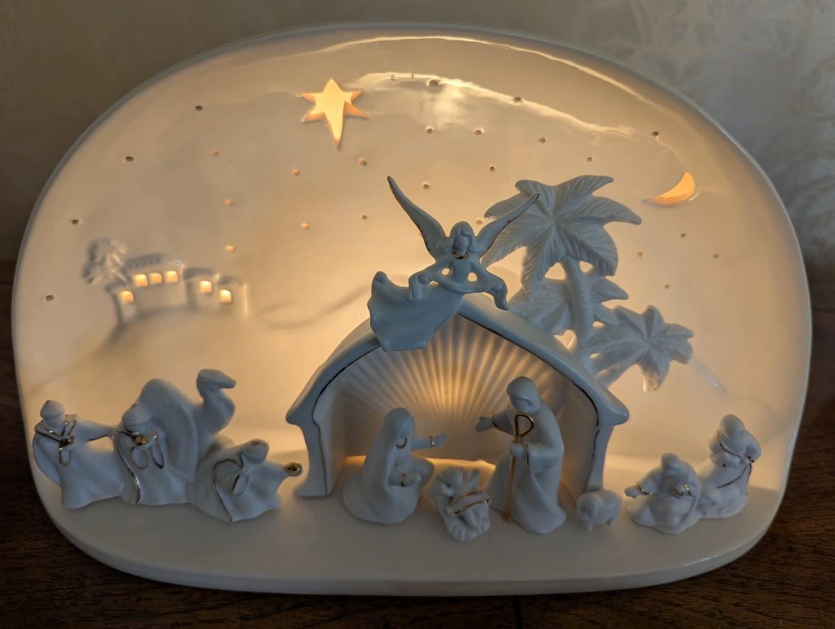Apple Tree Designs Lighted Nativity Scene Ceramic White