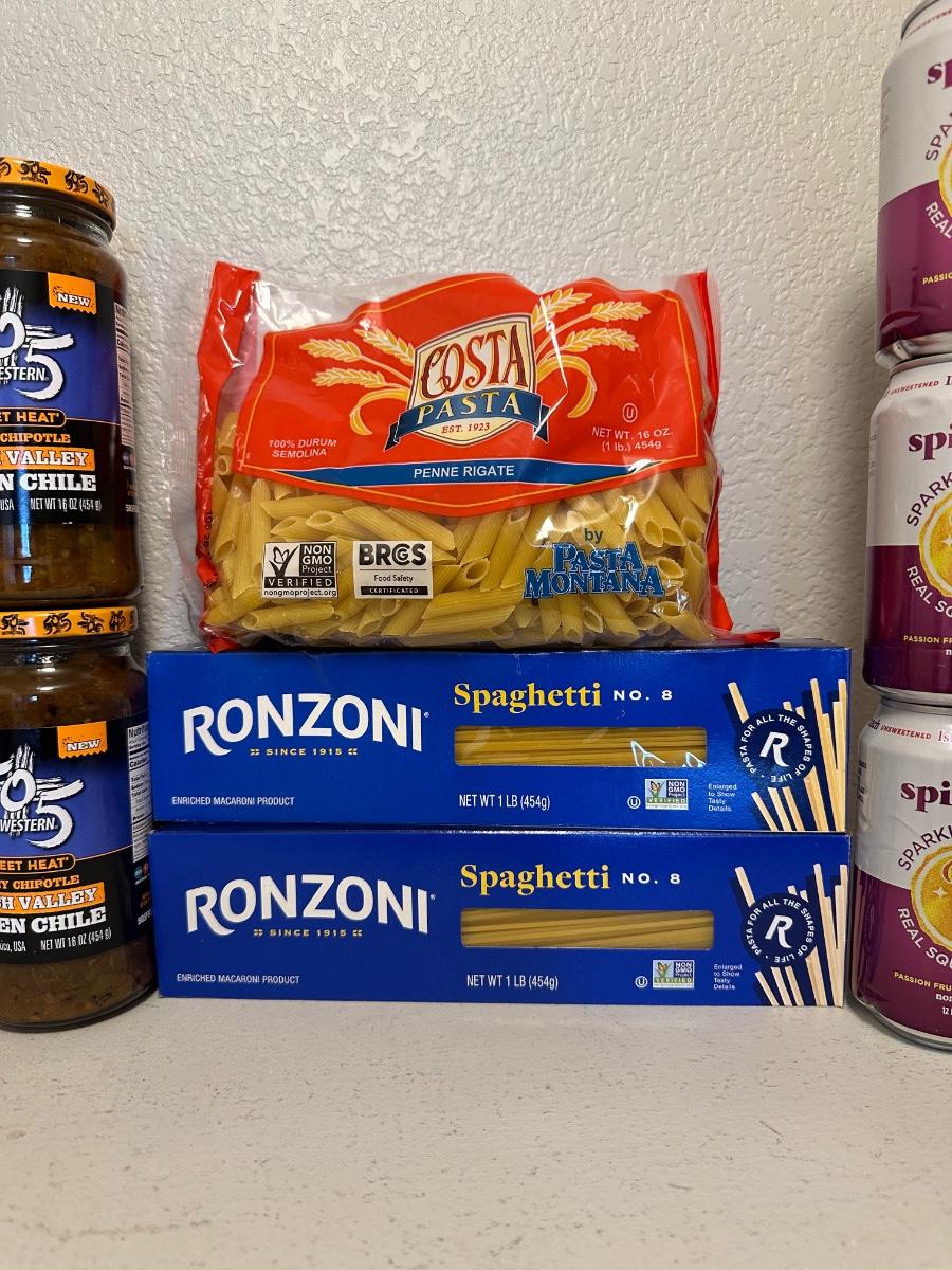 APPLE-CHERRY JUICE, SPAGHETTI NOODLES, GREEN CHILI SALSA AND MORE