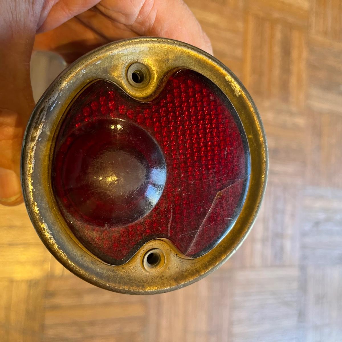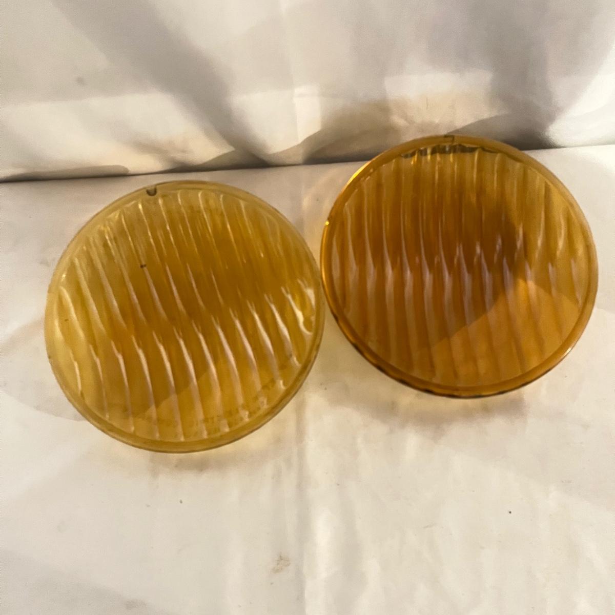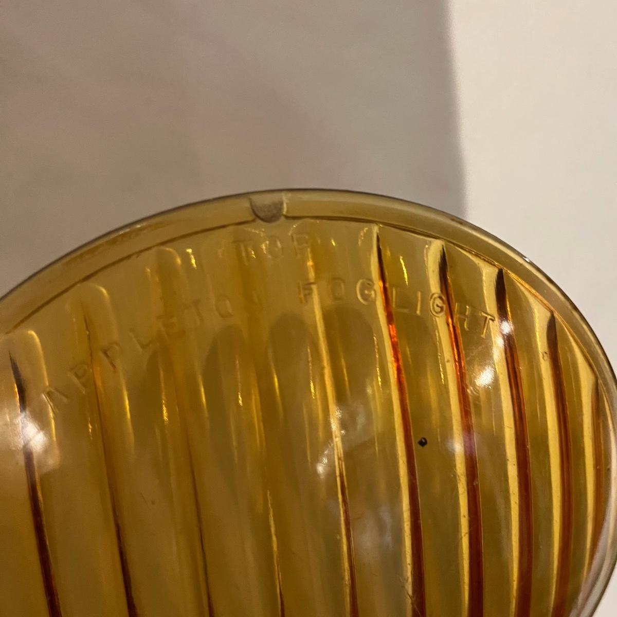 Lot includes a pair of Appleton glass fog light lenses and one taillight with glass lense that has a crack, see pictures. Fog light lenses measure 6.25”D.