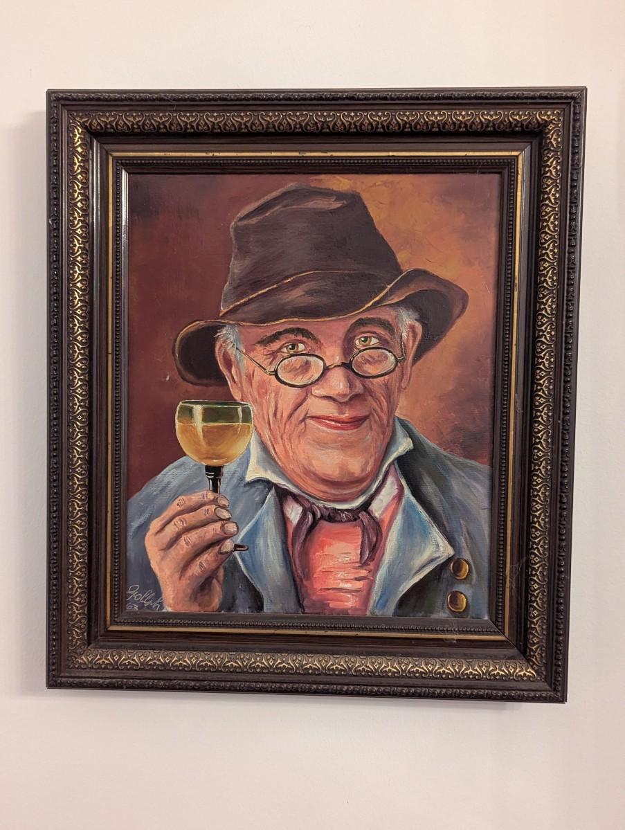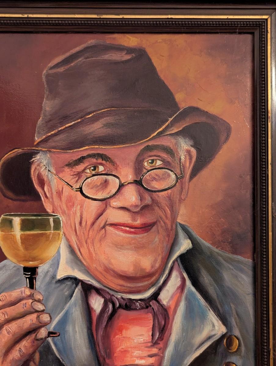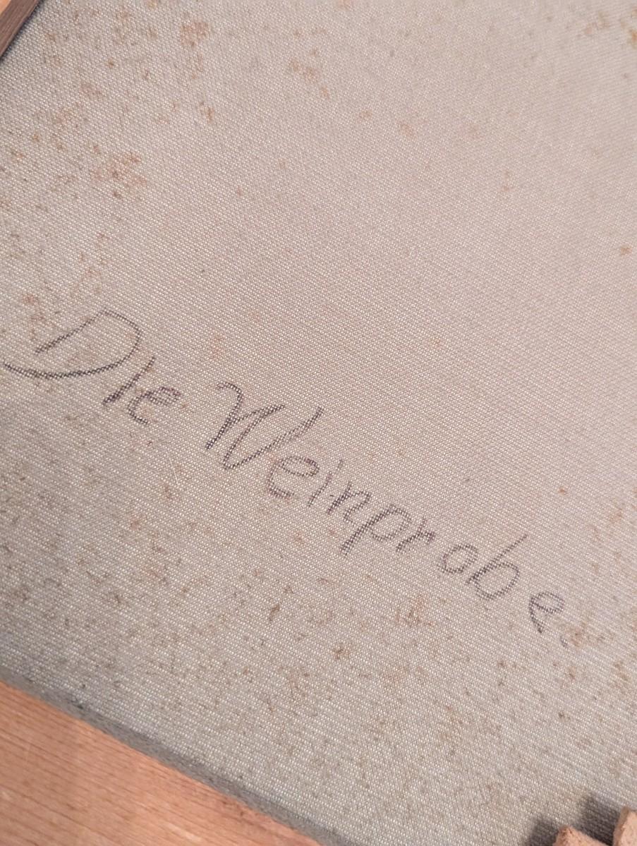 Approx 15 1/2" x 17 1/2" "Die Weinprobe" Signed Painting