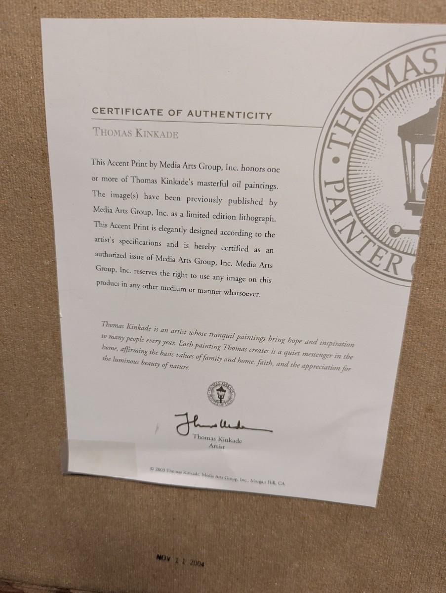 Approx 15" x 13 1/4" Memories Of Christmas Thomas Kinkade With COA
