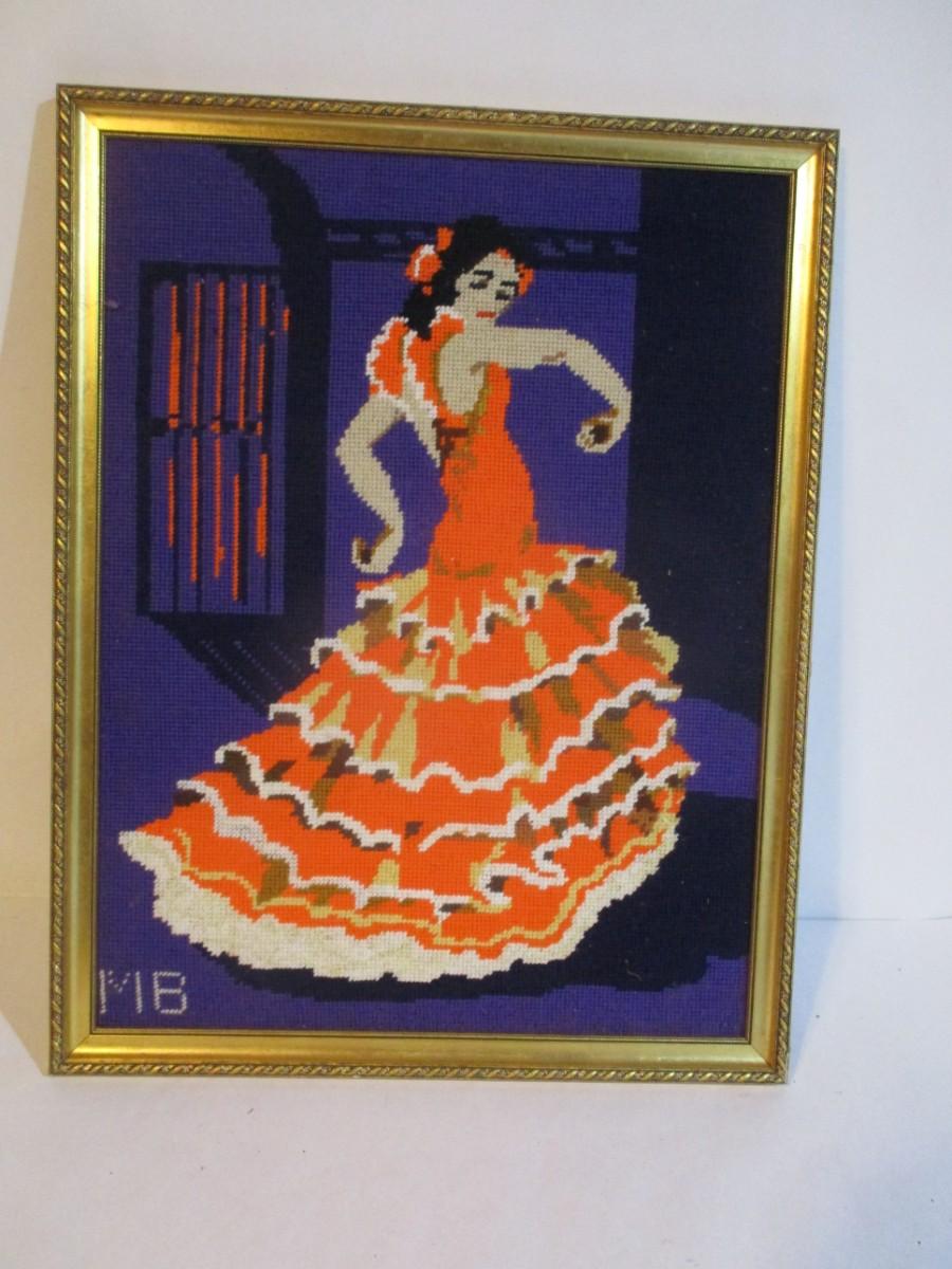 Approx 16 1/2" x 21 1/4" Framed Flamenco Dancer Cross Stitch Decor
