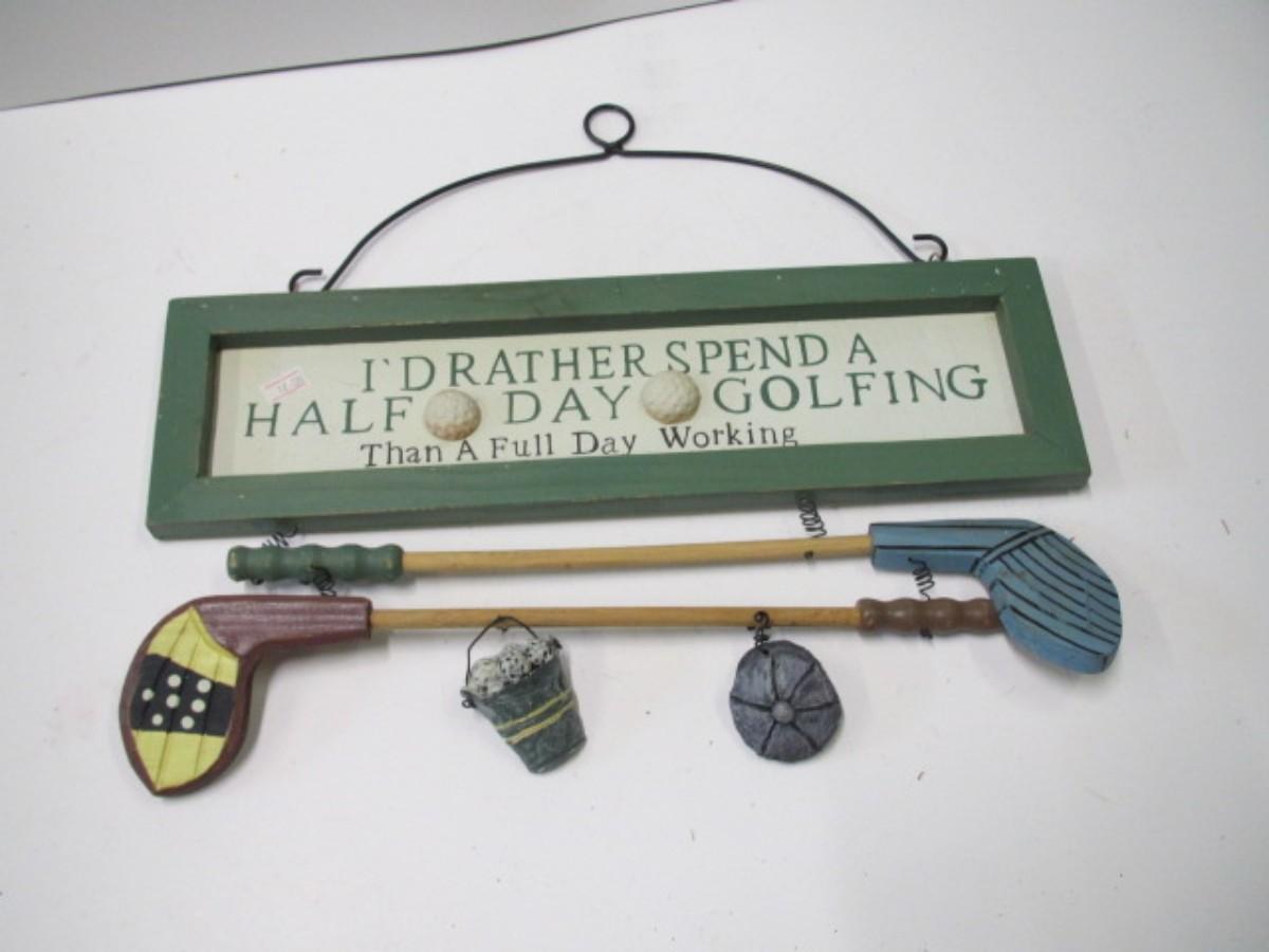 Approx 16" Long I'd Rather Spend A Half Day Golfing Than A Full Day Working Wooden Golf Sign
