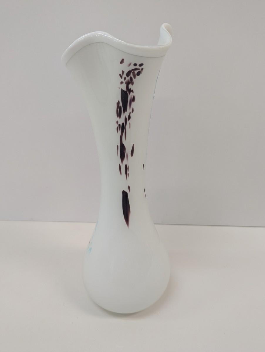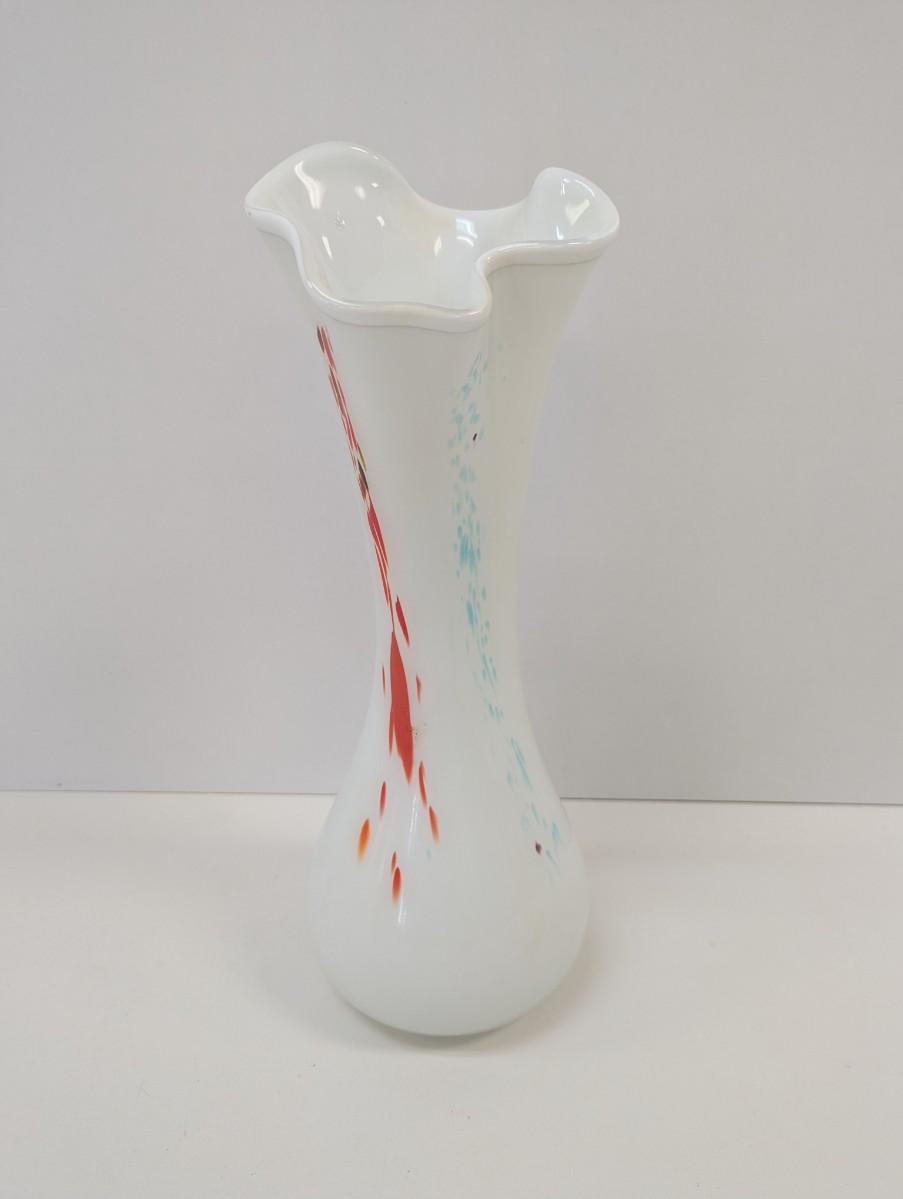 Approx 16" Tall Glass Flower Art Vase Ruffle Rim #57