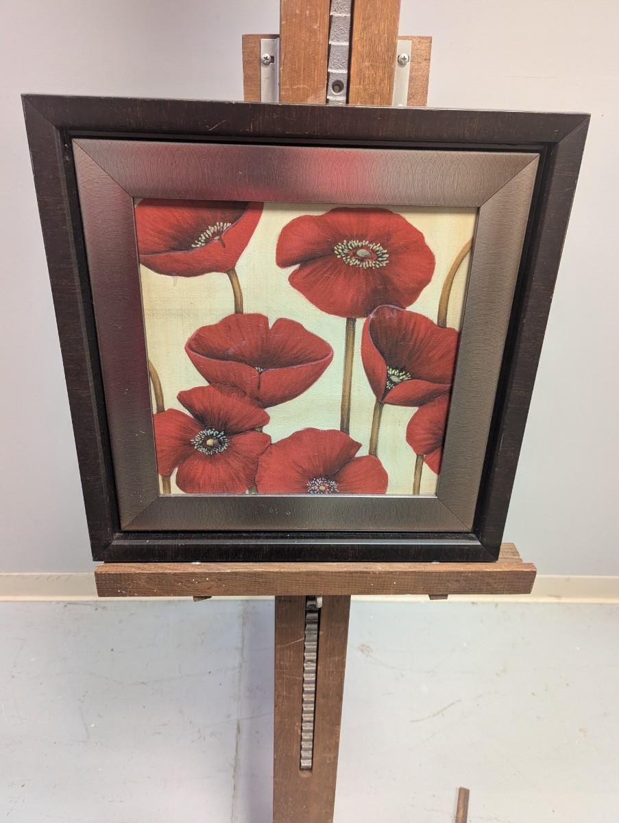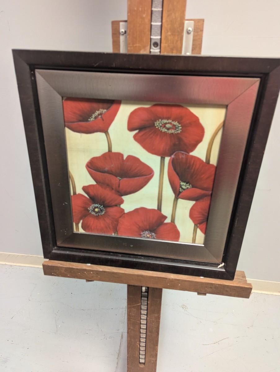 Approx 17" x 17 1/2" Floral Poppies Framed Wall Art