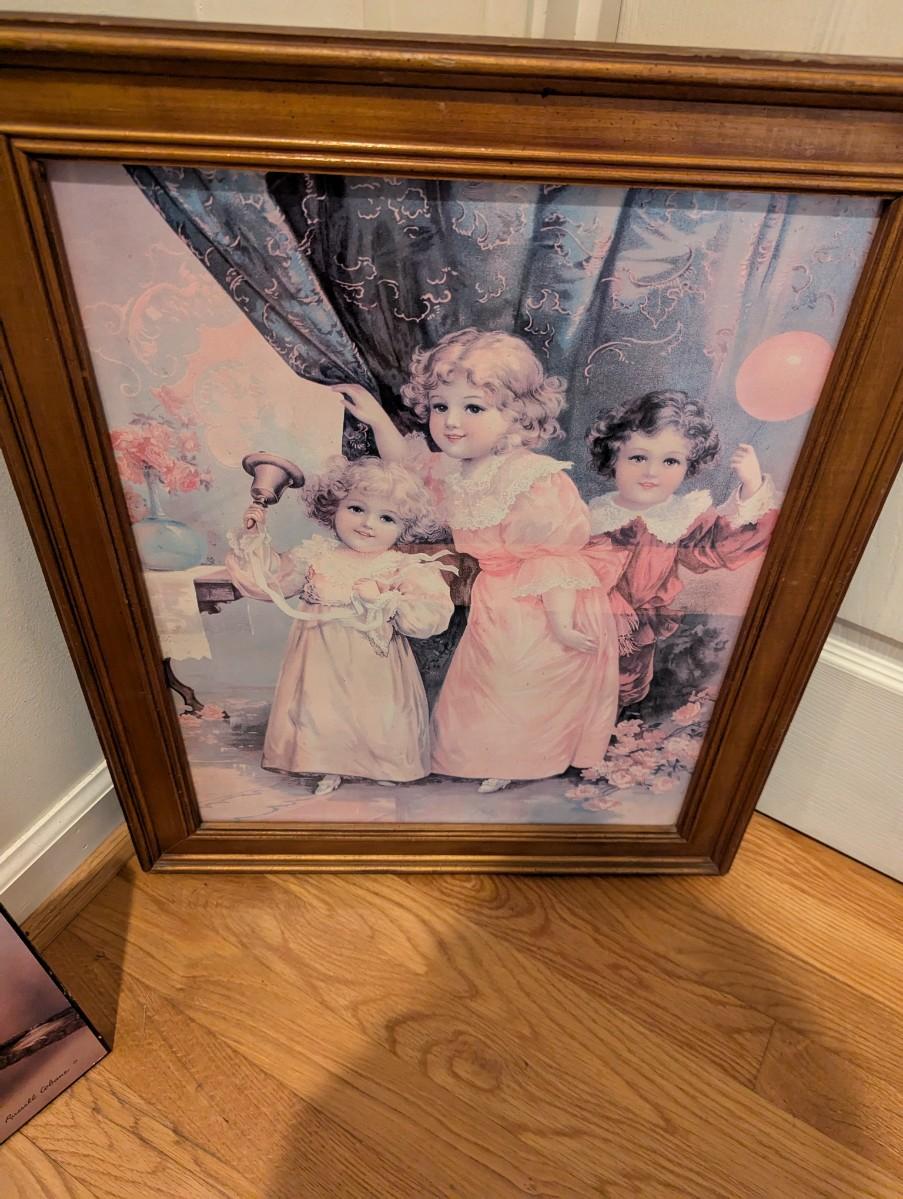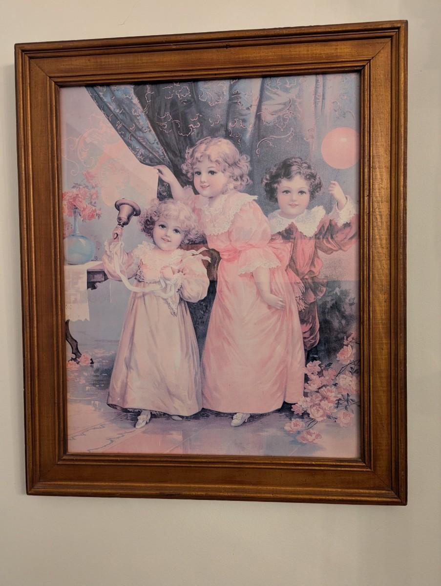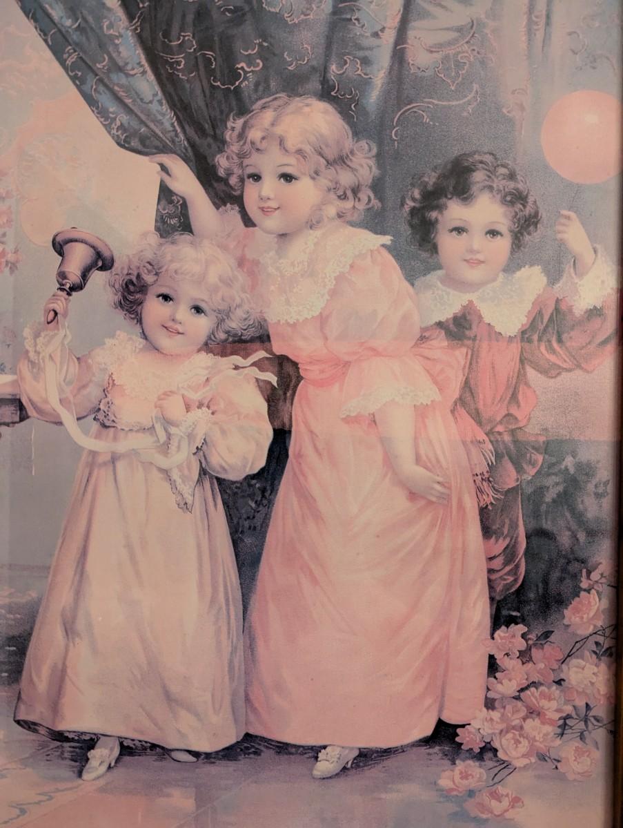 Approx 18 1/2" x 23 1/4" Antique Victorian Print Children