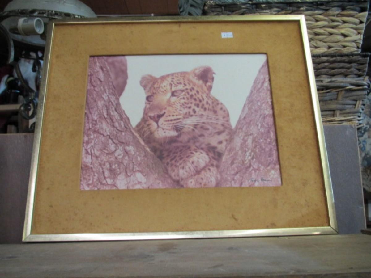 Approx 19" x 17" Framed Leopard Signed Art