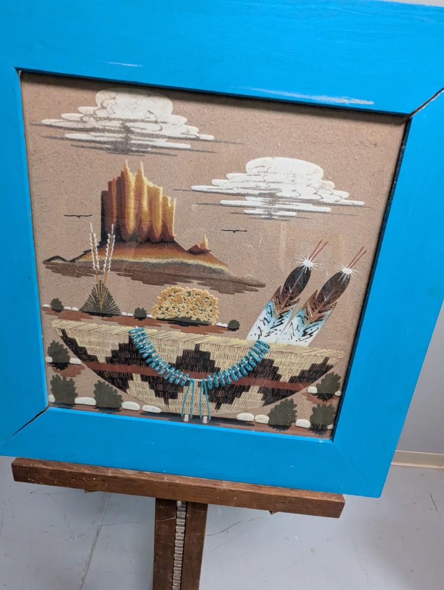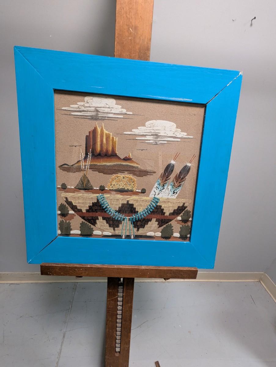 Approx 22" x 22 5/8" Sand Painting Signed By Navajo Artist Ben Matchers