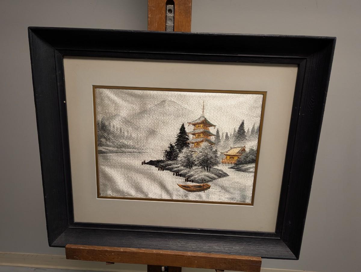 Approx 23 1/2" x 19 3/4" Japanese Silk Landscape Framed Japan Art