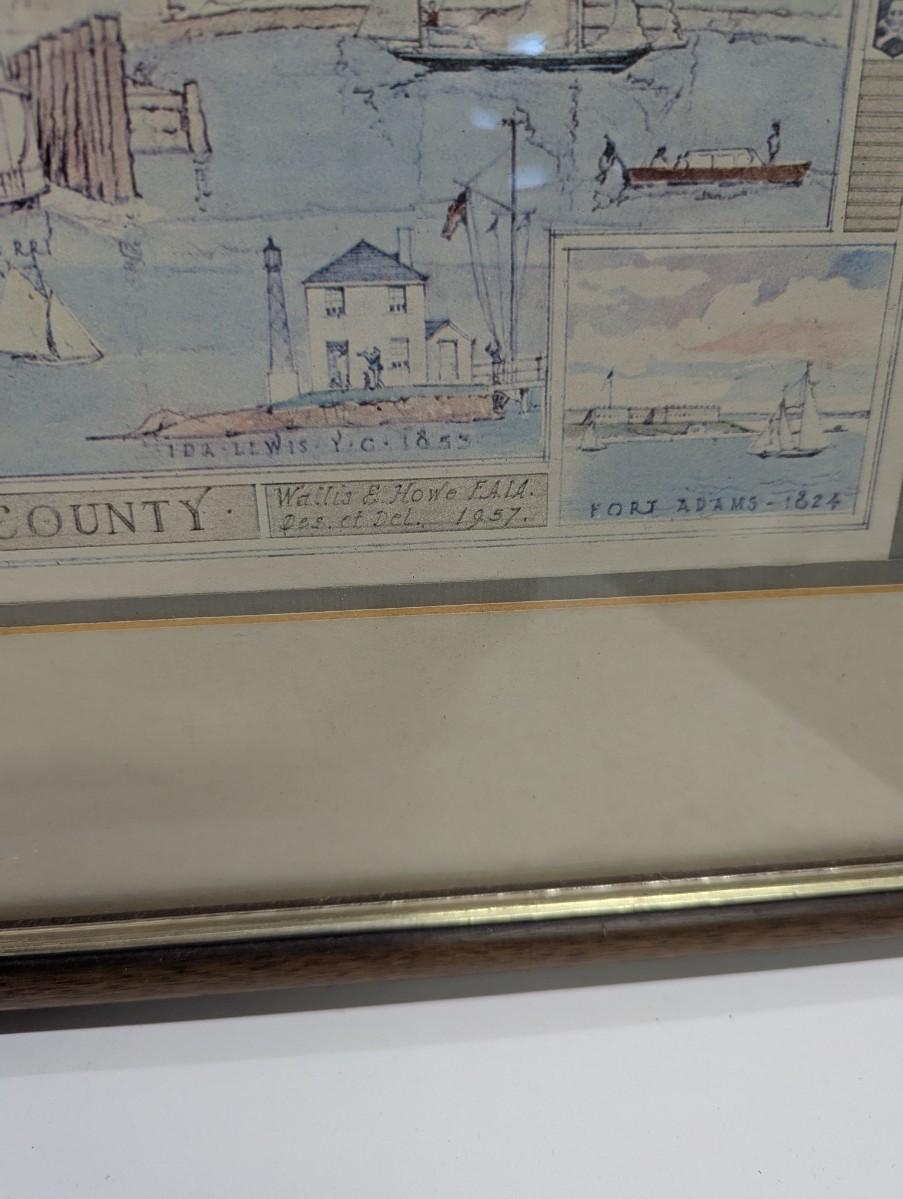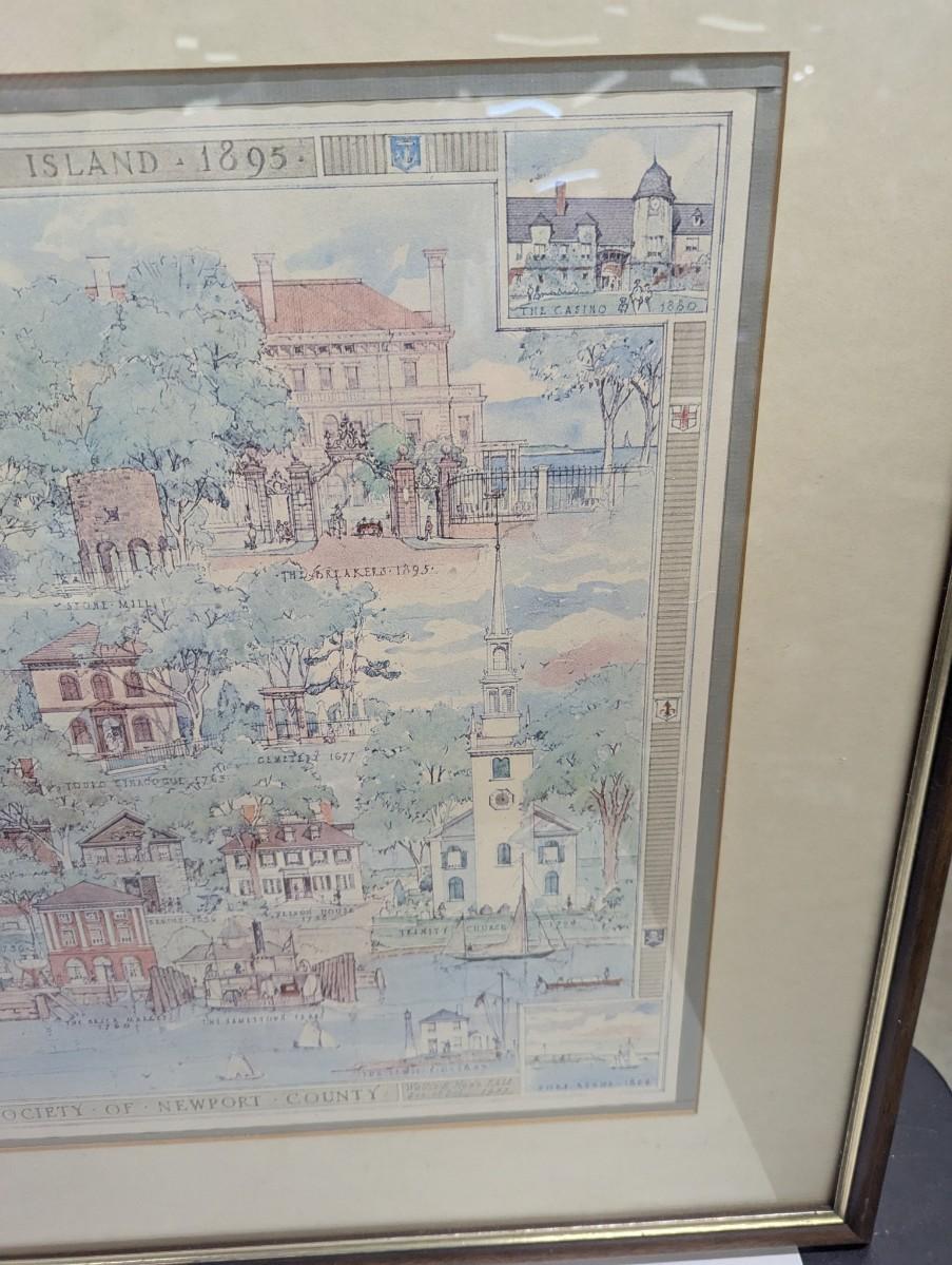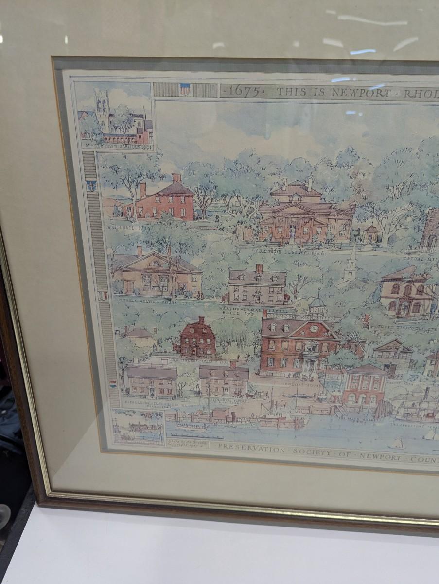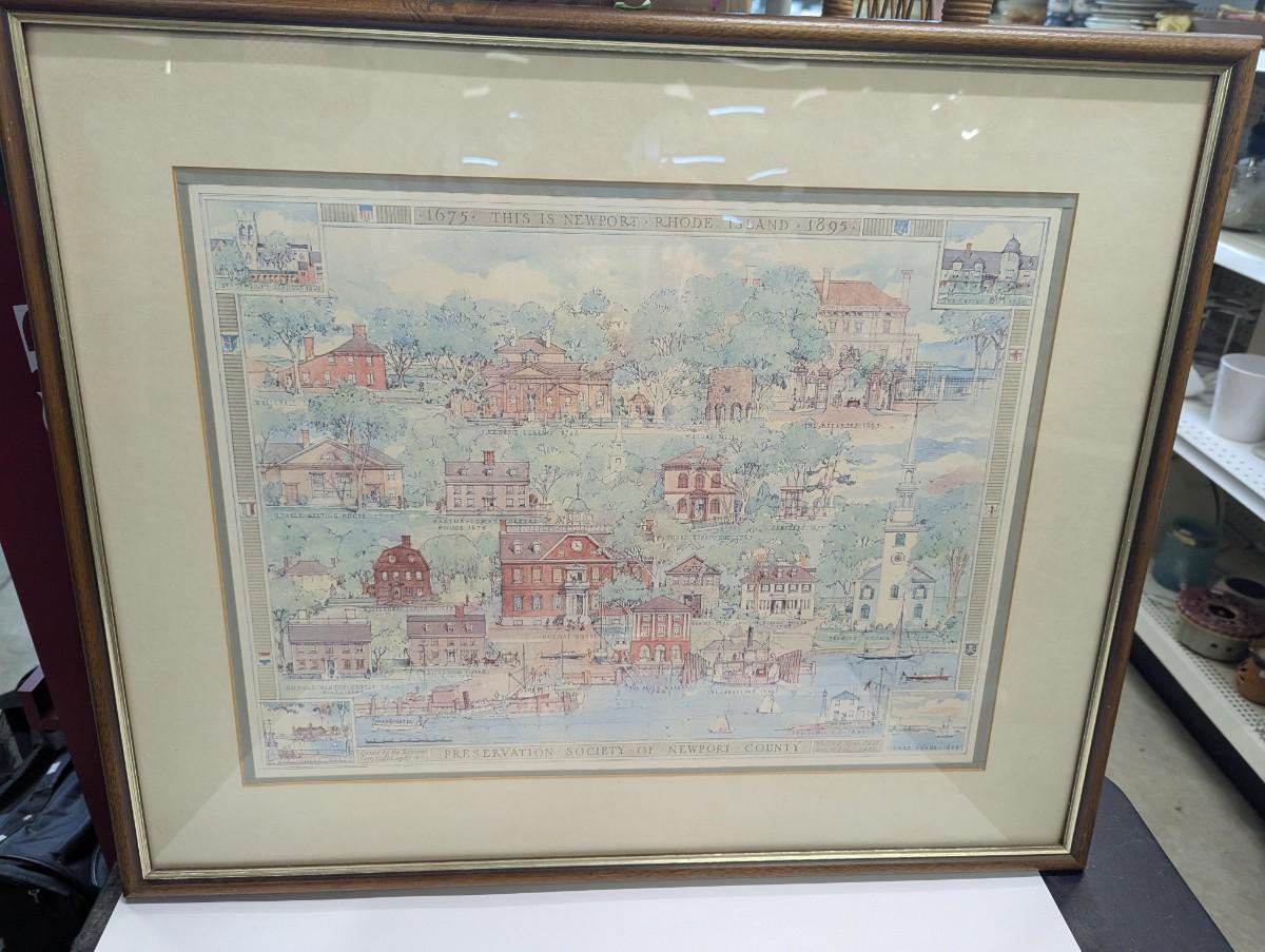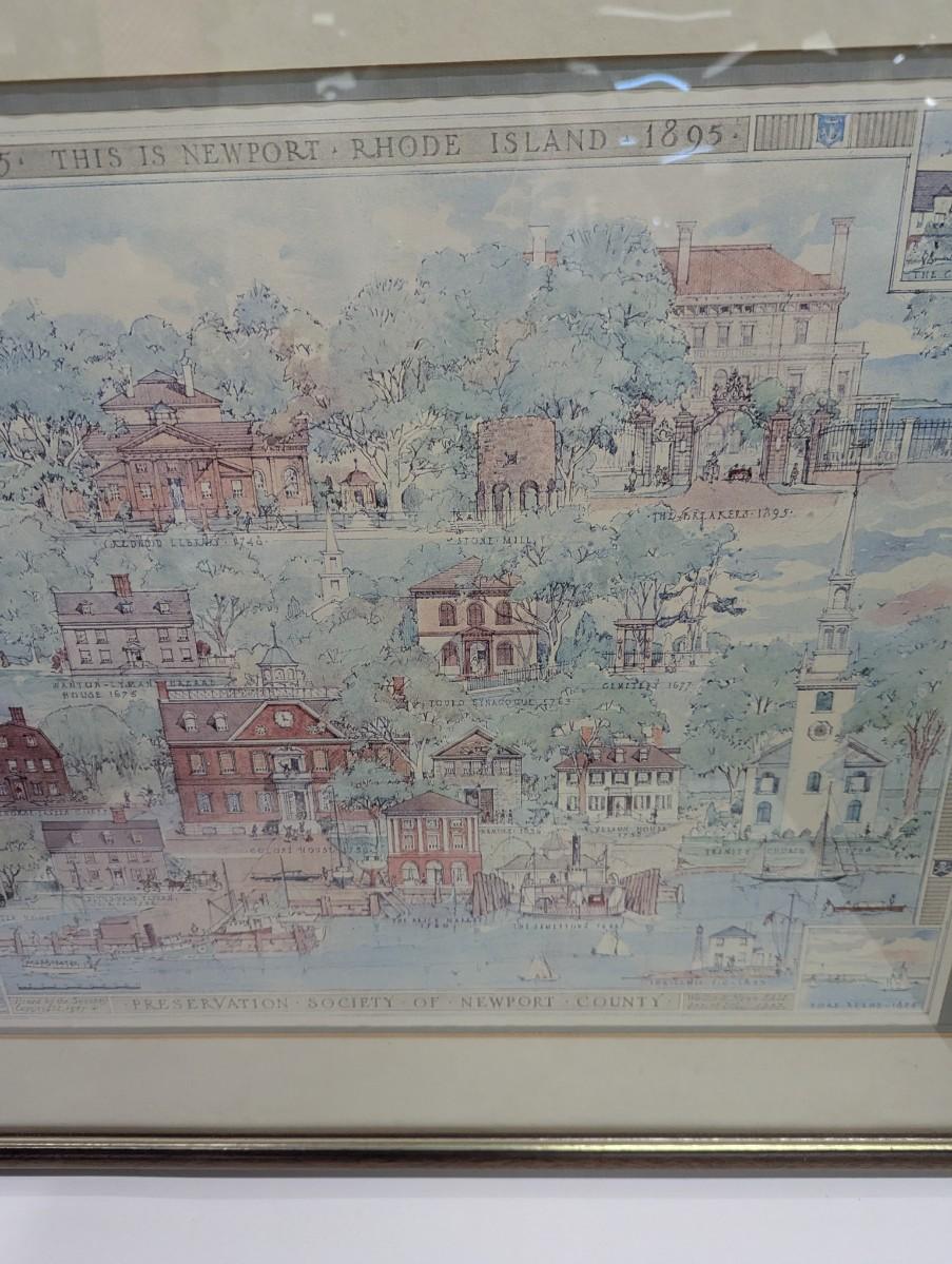 Approx 29" x 25" 1957 Antique Print Newport Rhode Island