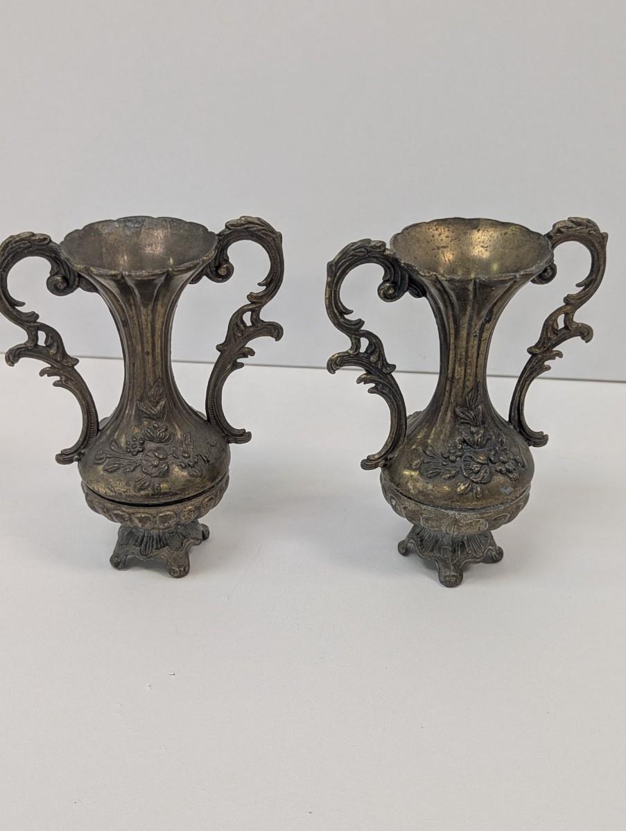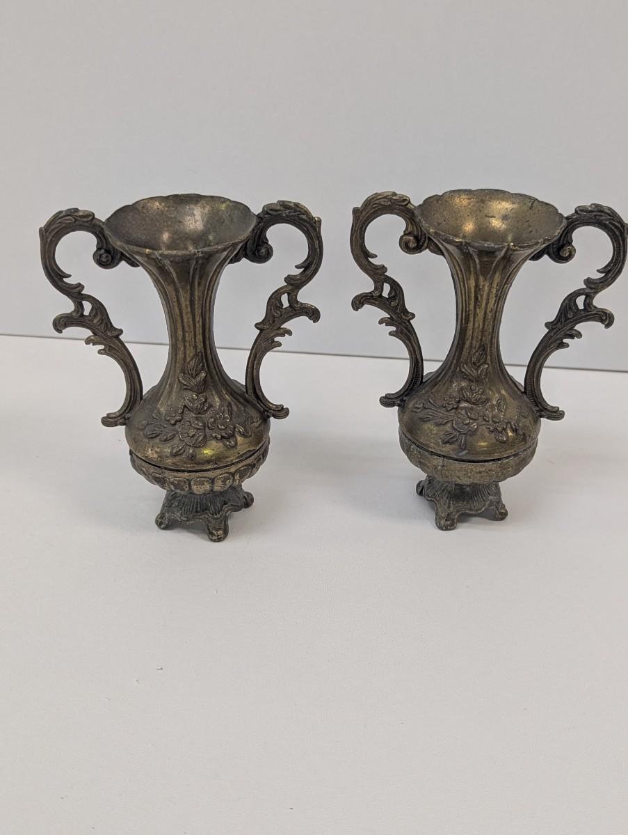 Approx 6" Tall Vintage Italian Brass Vases Made In Italy