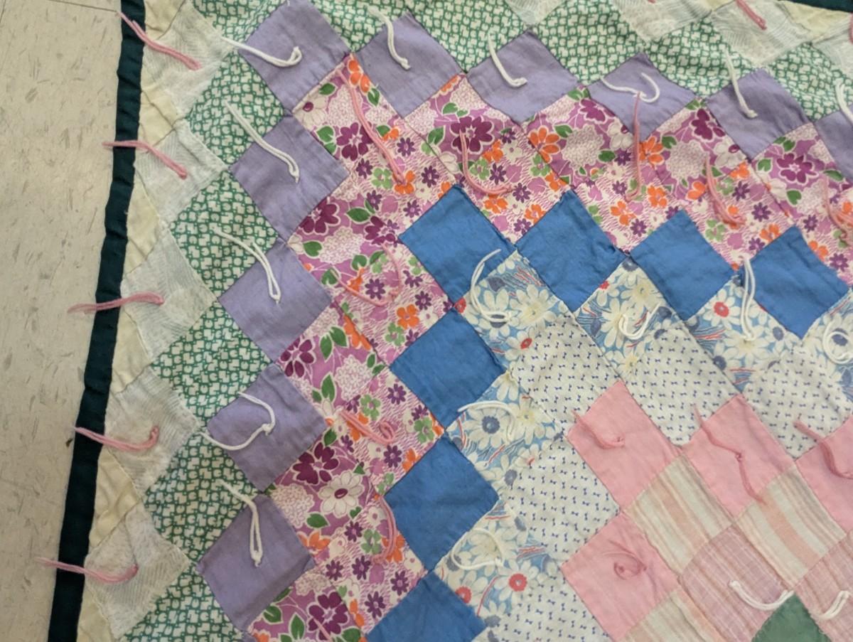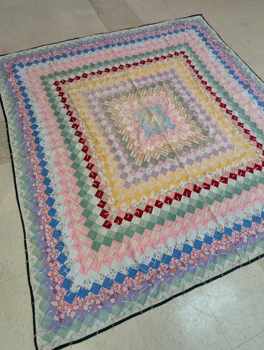 Approx 74 1/4" x 69" Vintage Hand Made Quilt