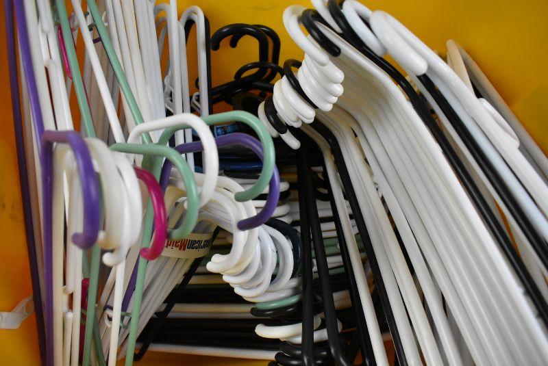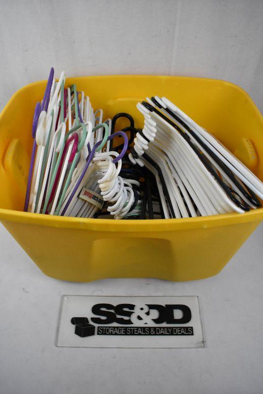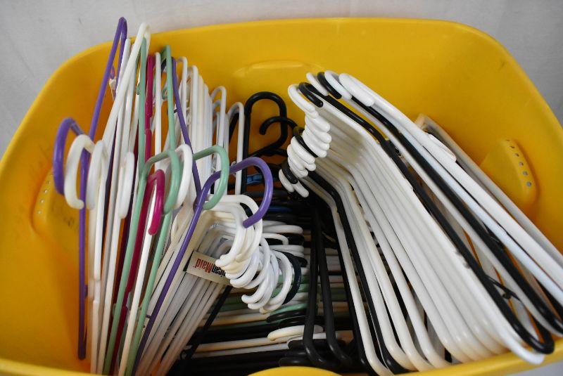 Approx 79 Plastic Hangers in Yellow Bin