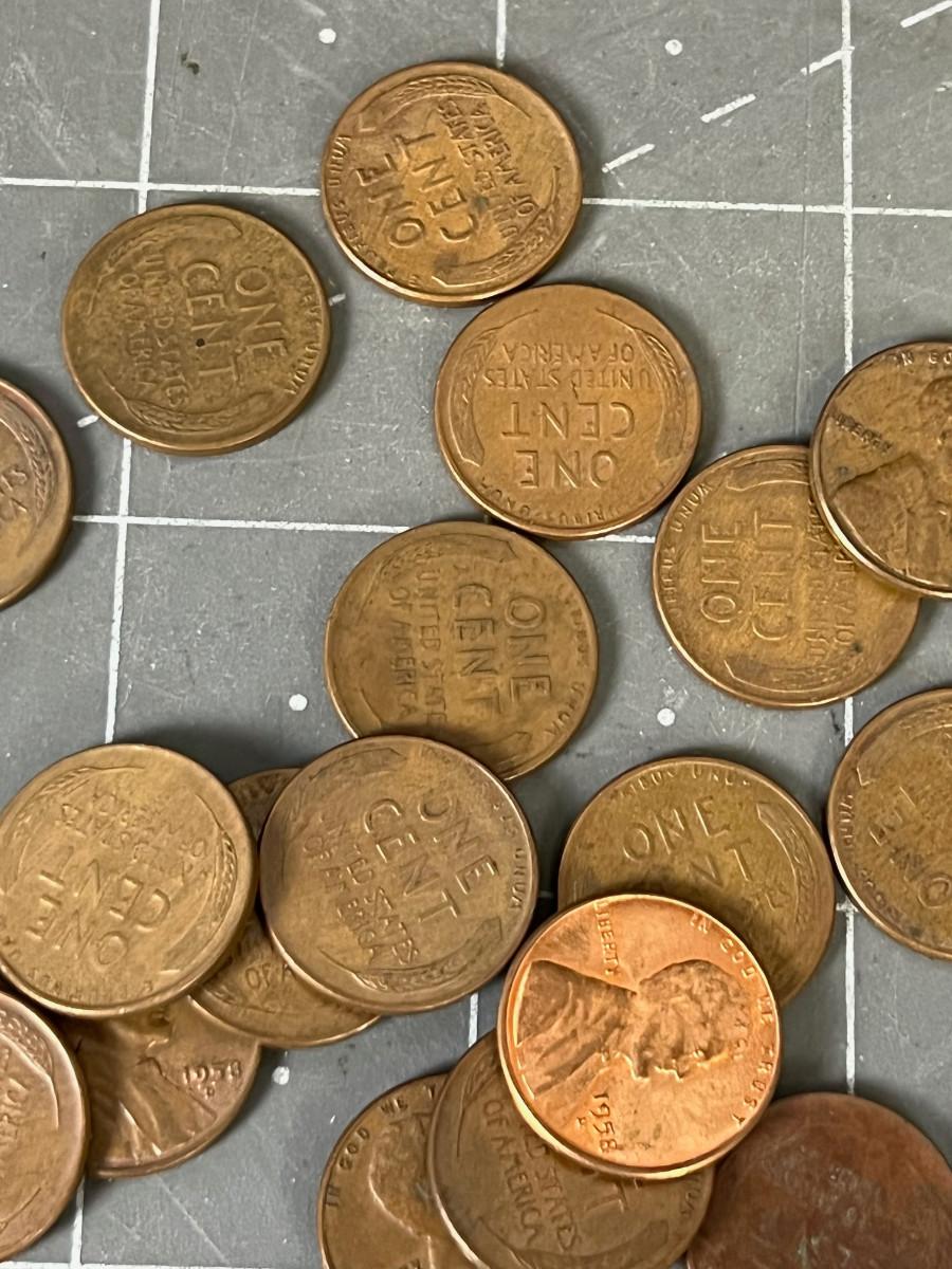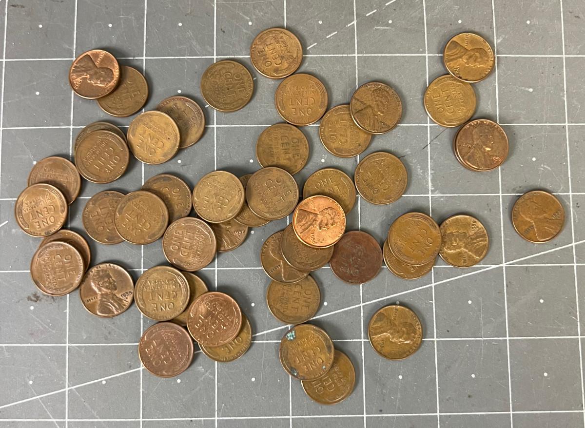 Approximately 50 Wheat Pennies, OLD