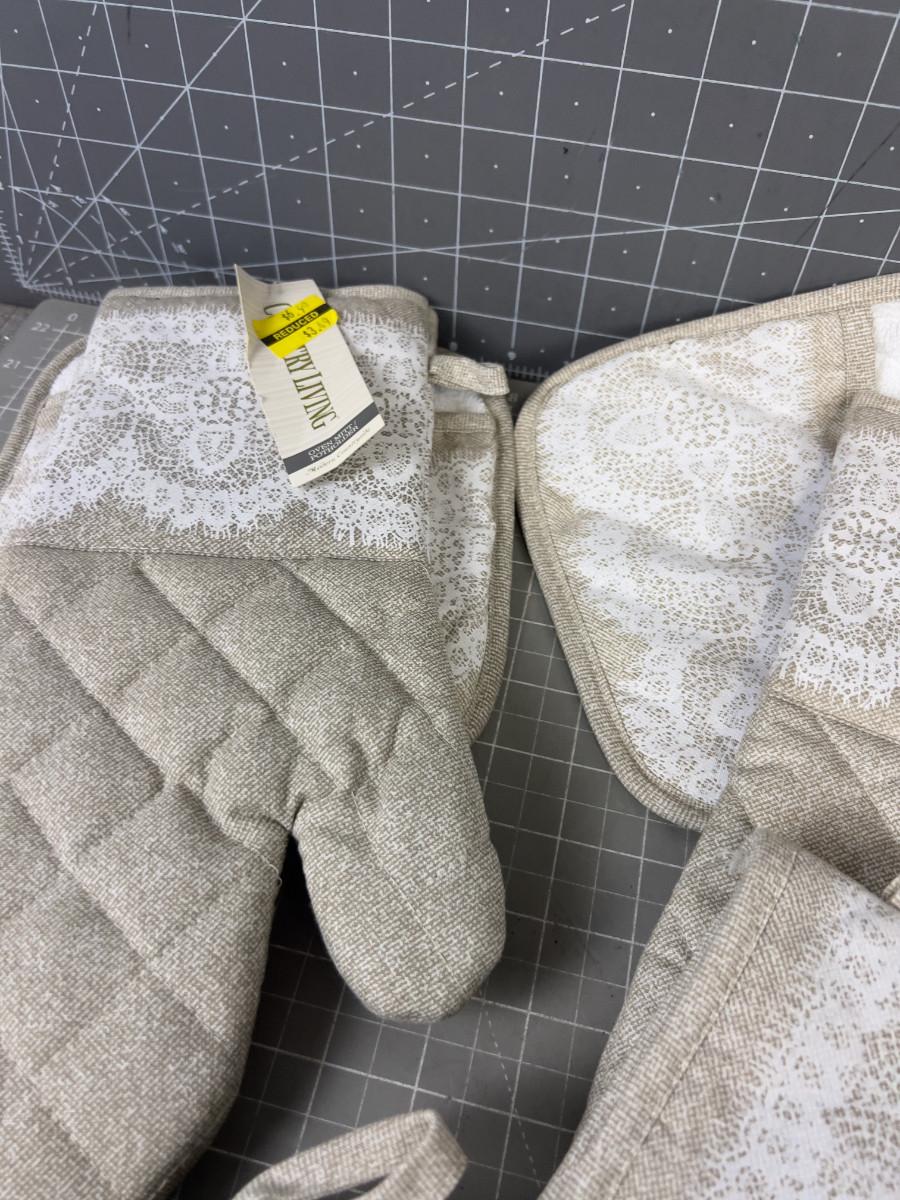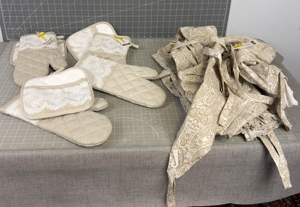 Aprons (6) and Oven Mitts and 3 Oven mitt / Hot pad Sets