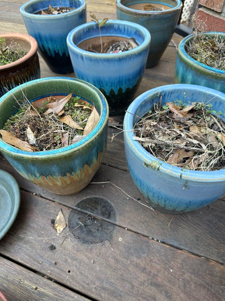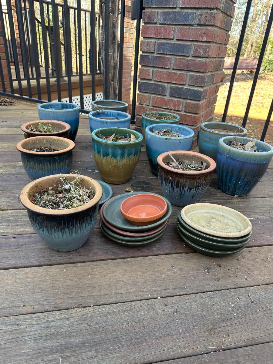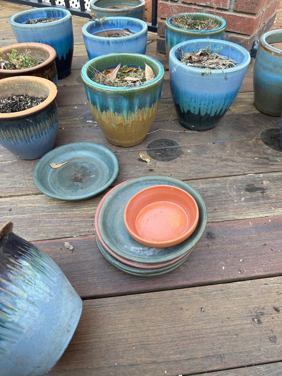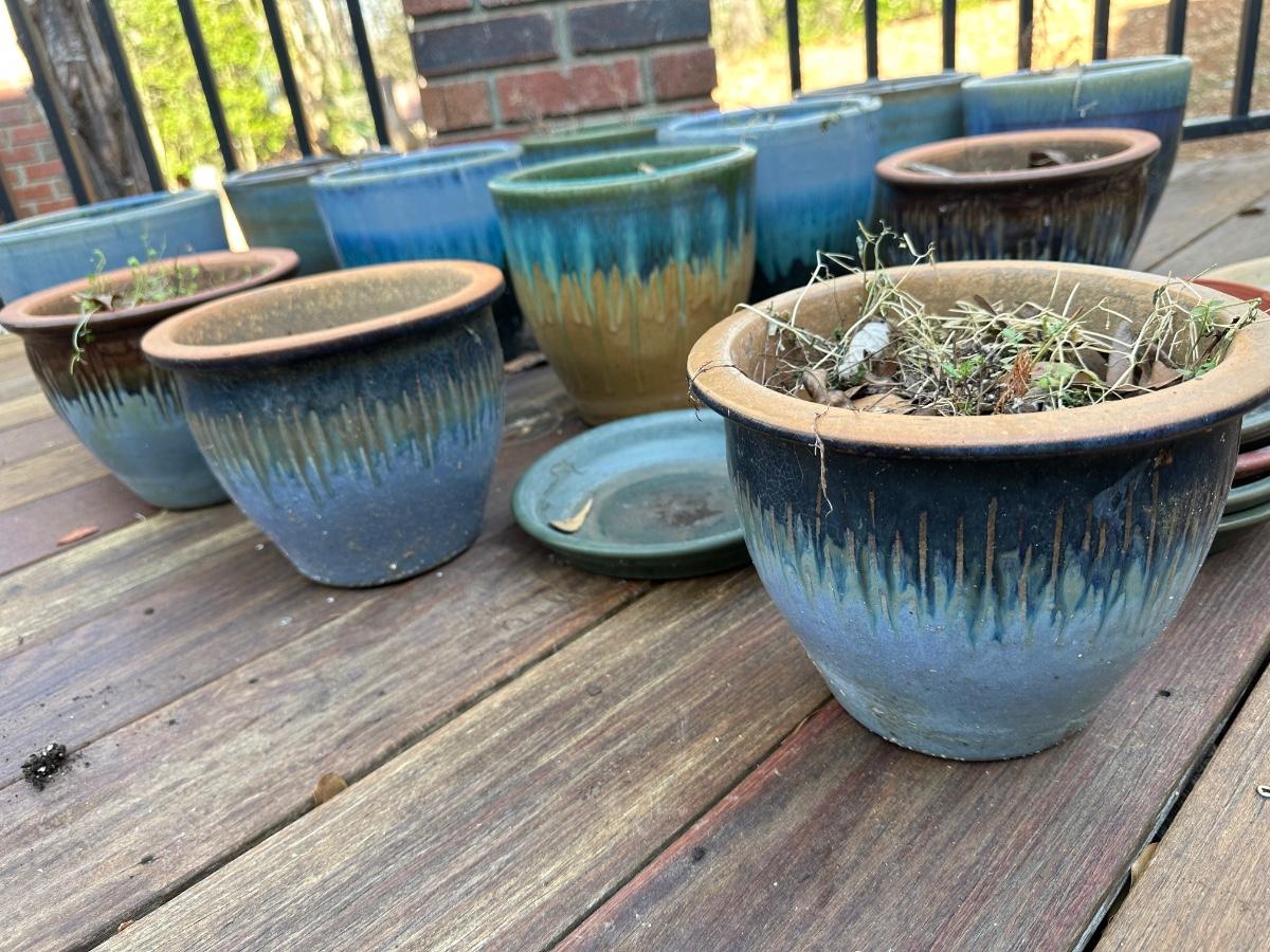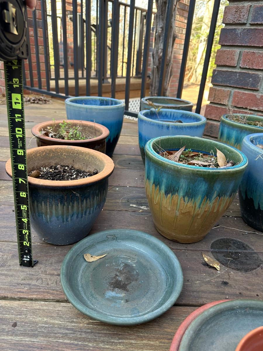 13 Aqua 2-tone ceramic planters / Sizes vary