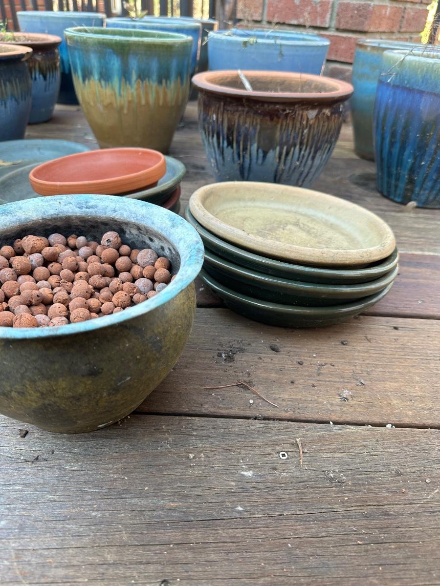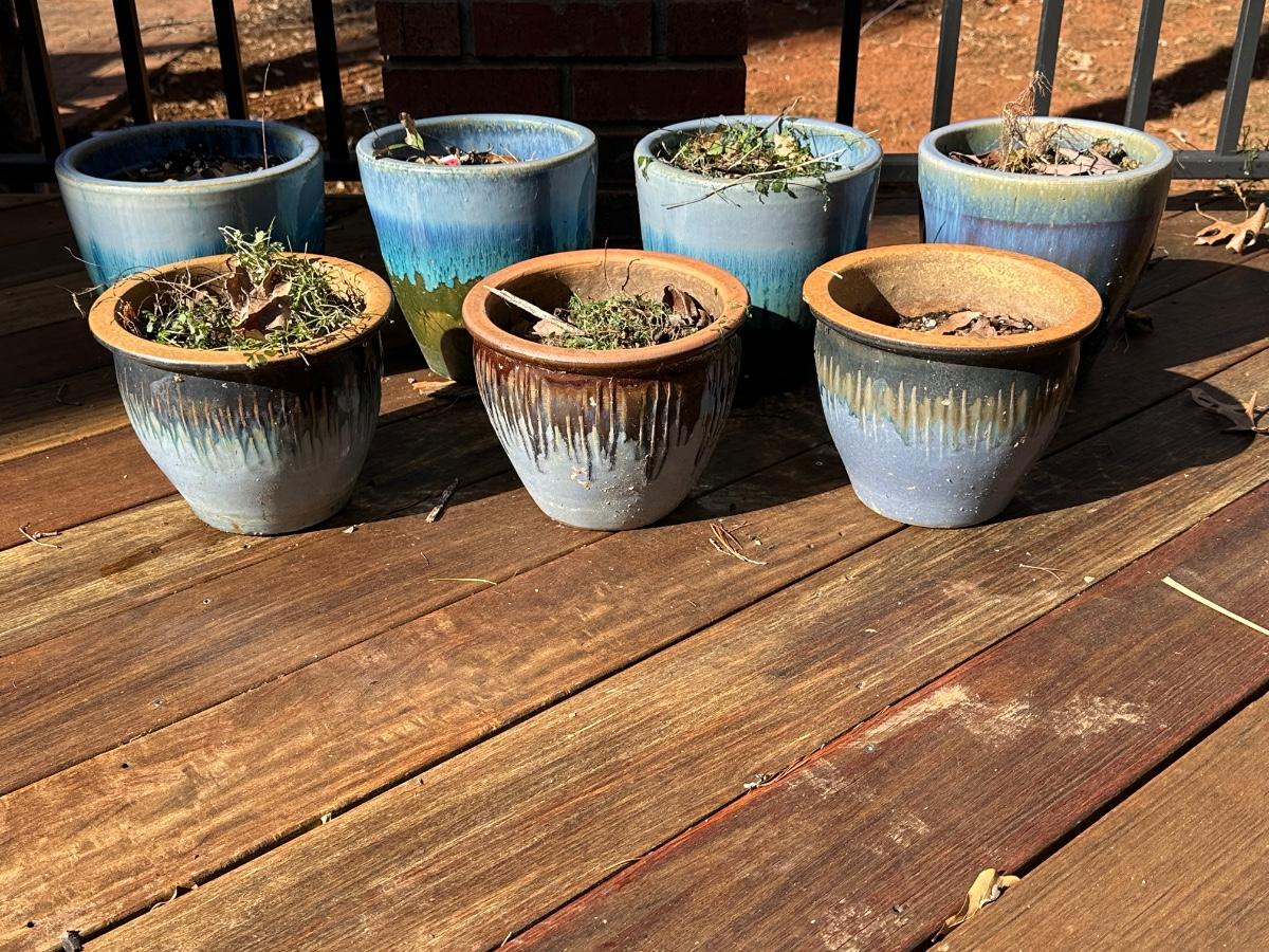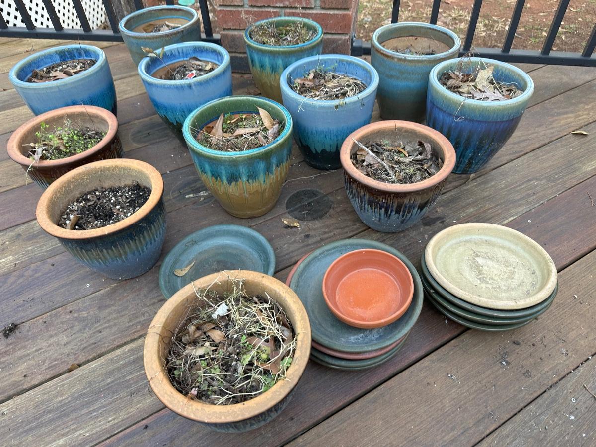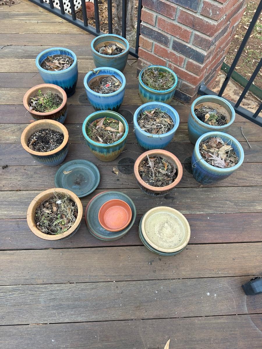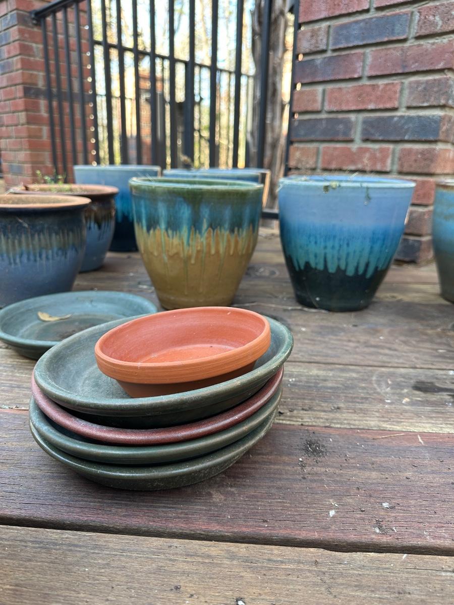 13 Aqua 2-tone ceramic planters / Sizes vary