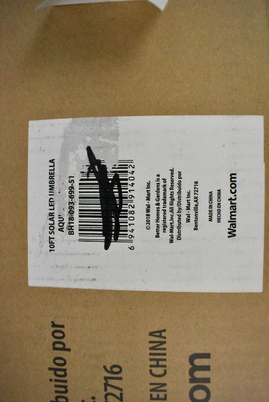 Aqua, Better Homes & Gardens 10 ft. Solar Lighted Umbrella, Aquifer, Open Box - New