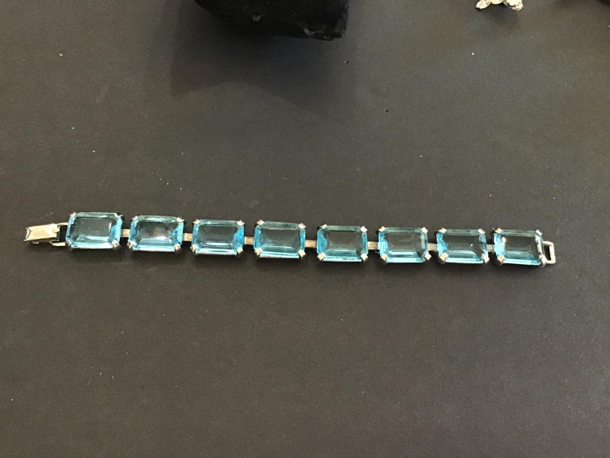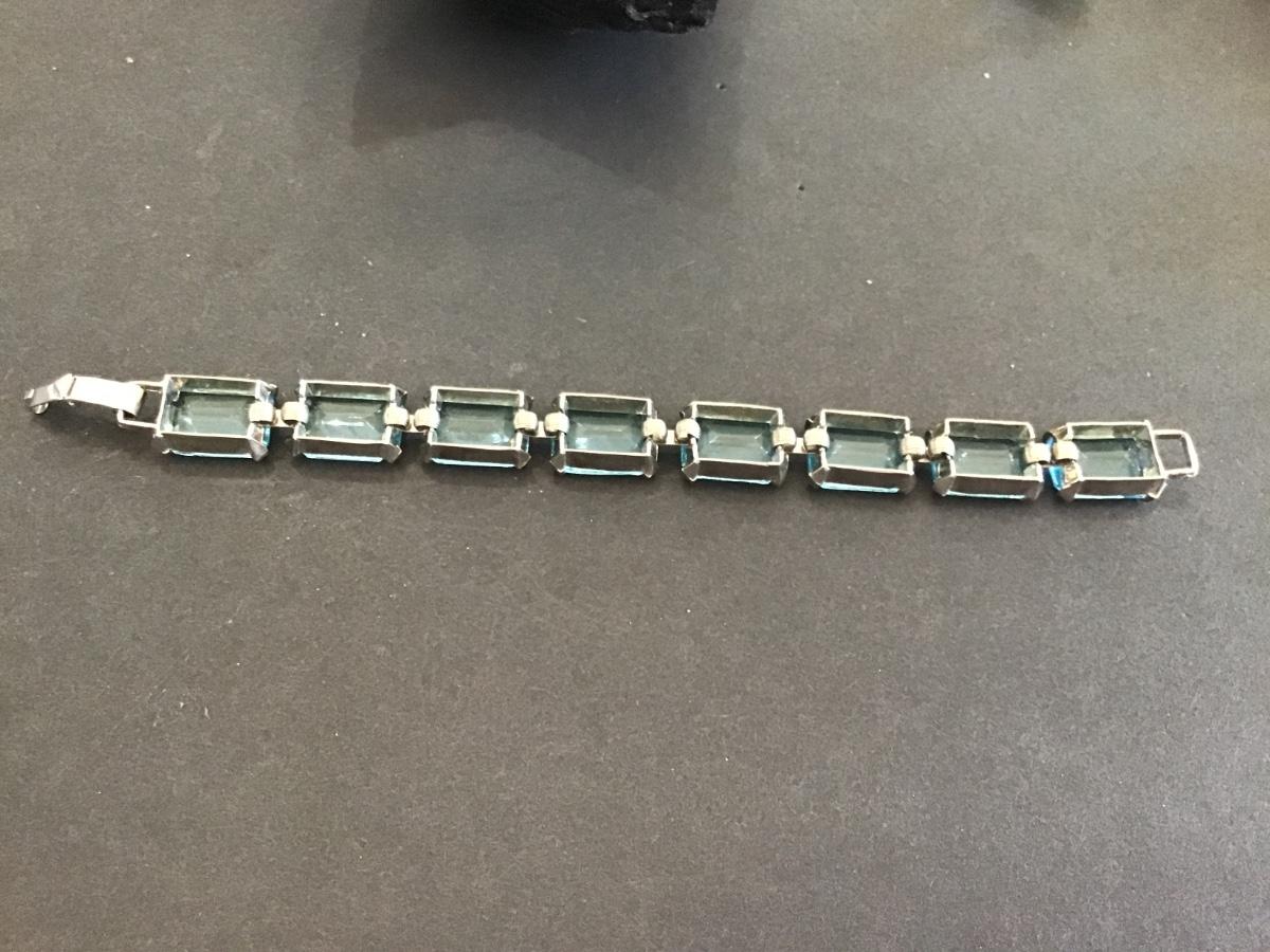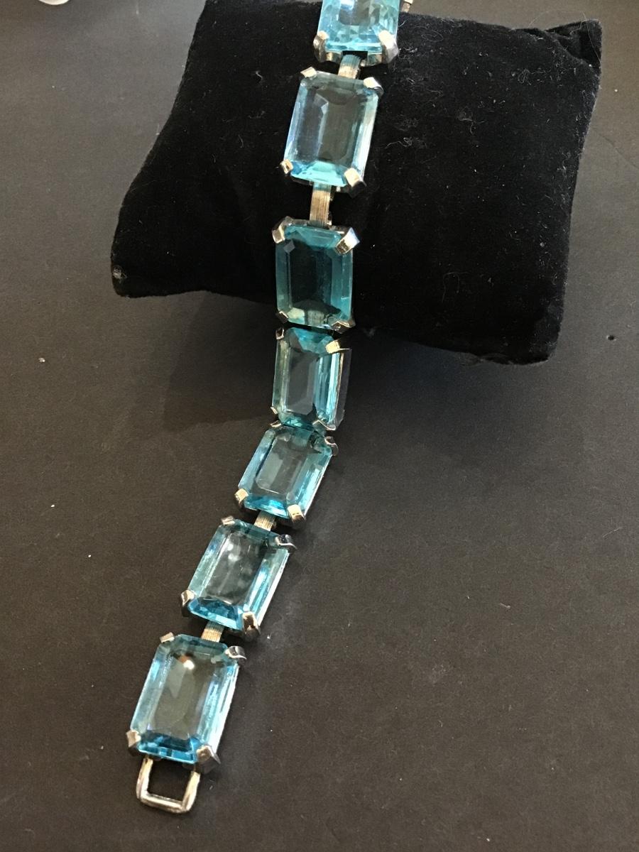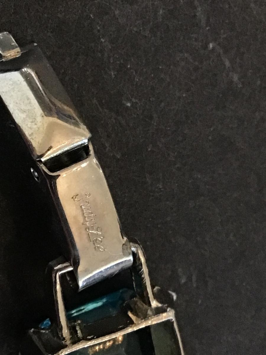 Aqua Blue Rhinestone Rectangle Signed Judy Lee Retro K133