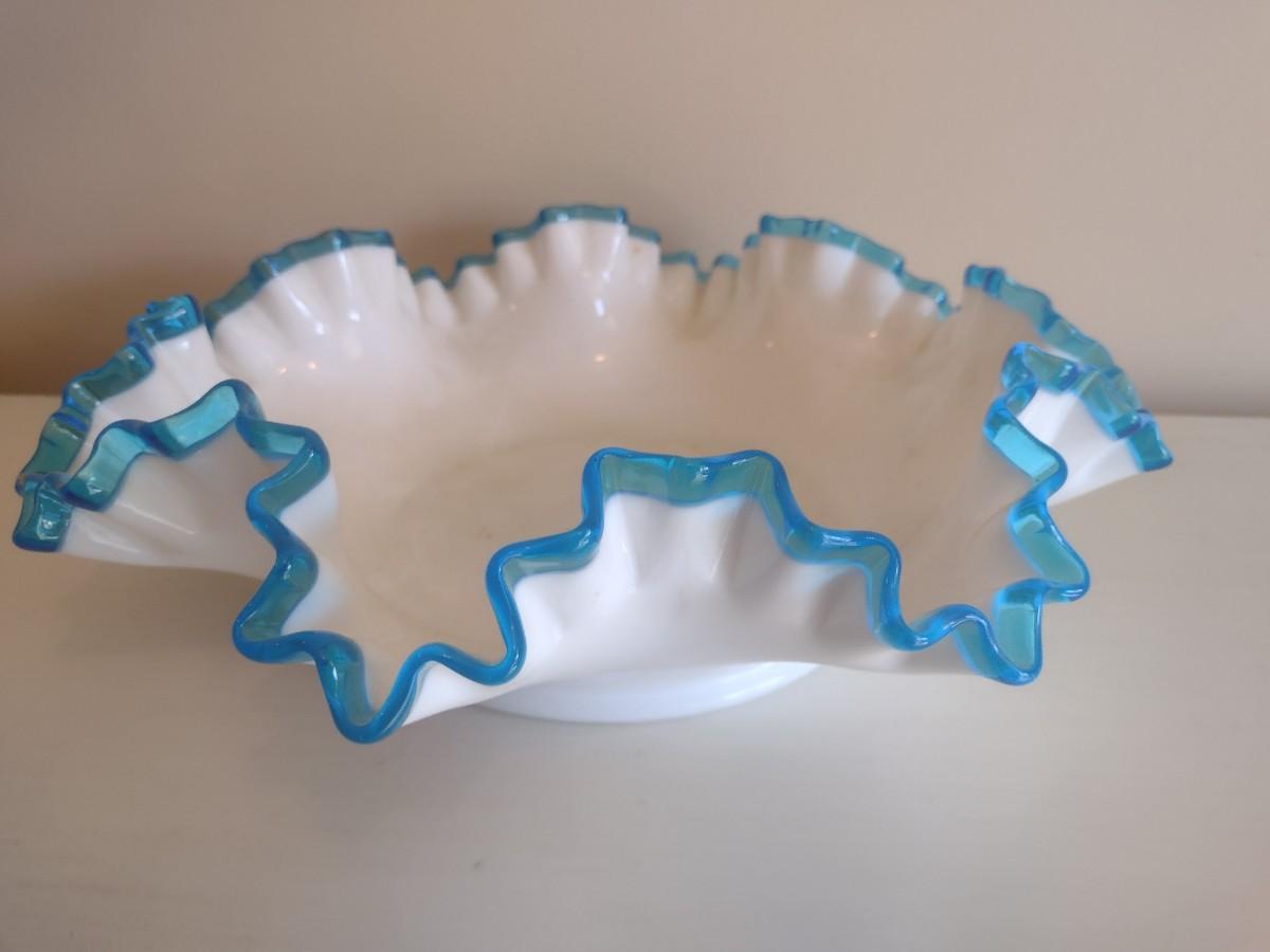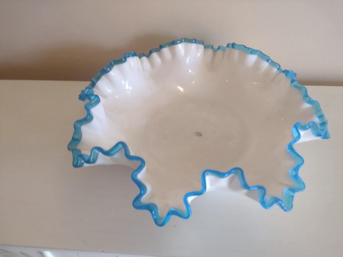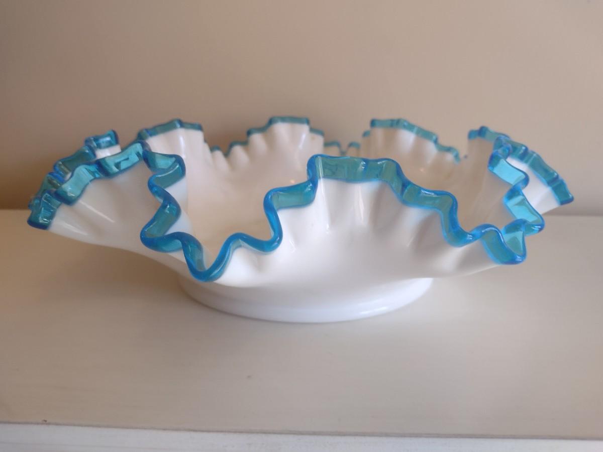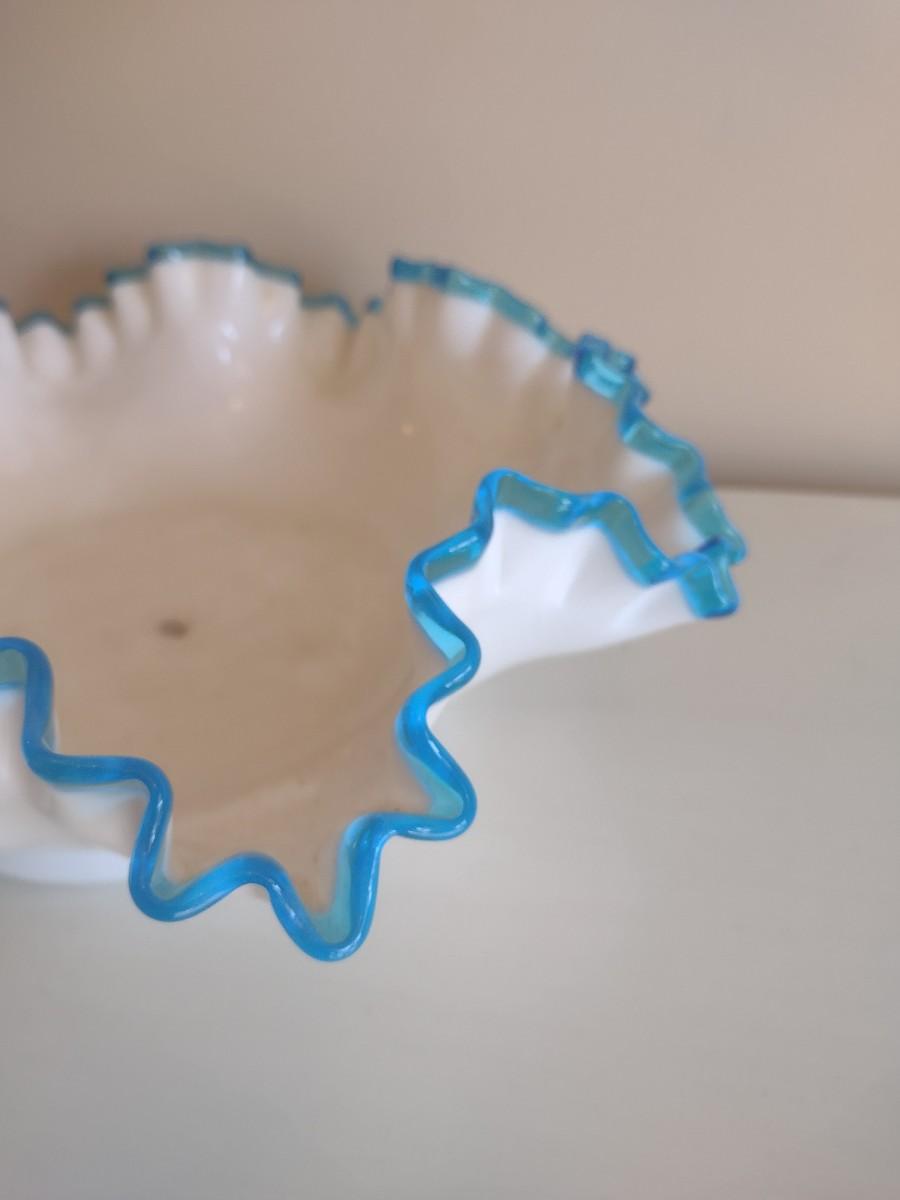 Aqua Crest Milk Glass Dish Possible Fenton No Maker's Mark
