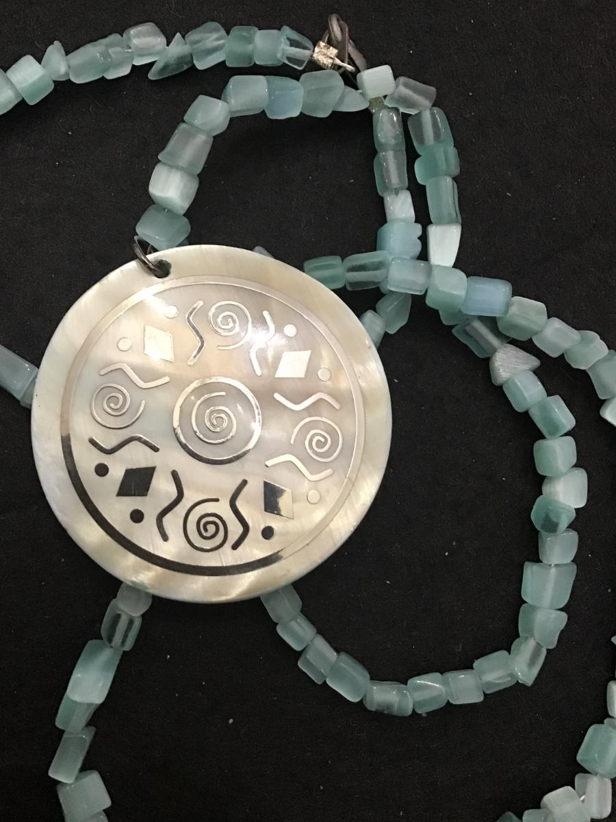 Aqua Green Agate Aztec Shell inlay Design