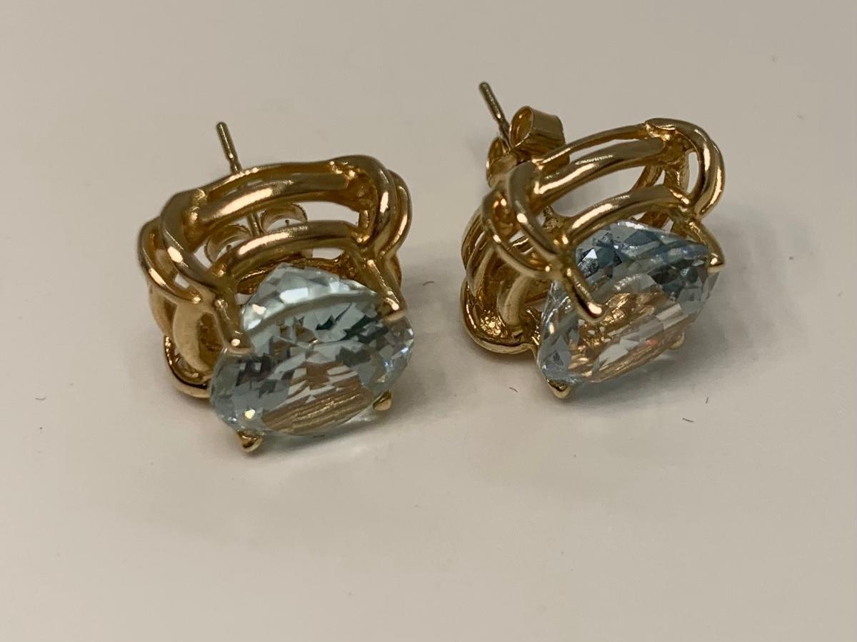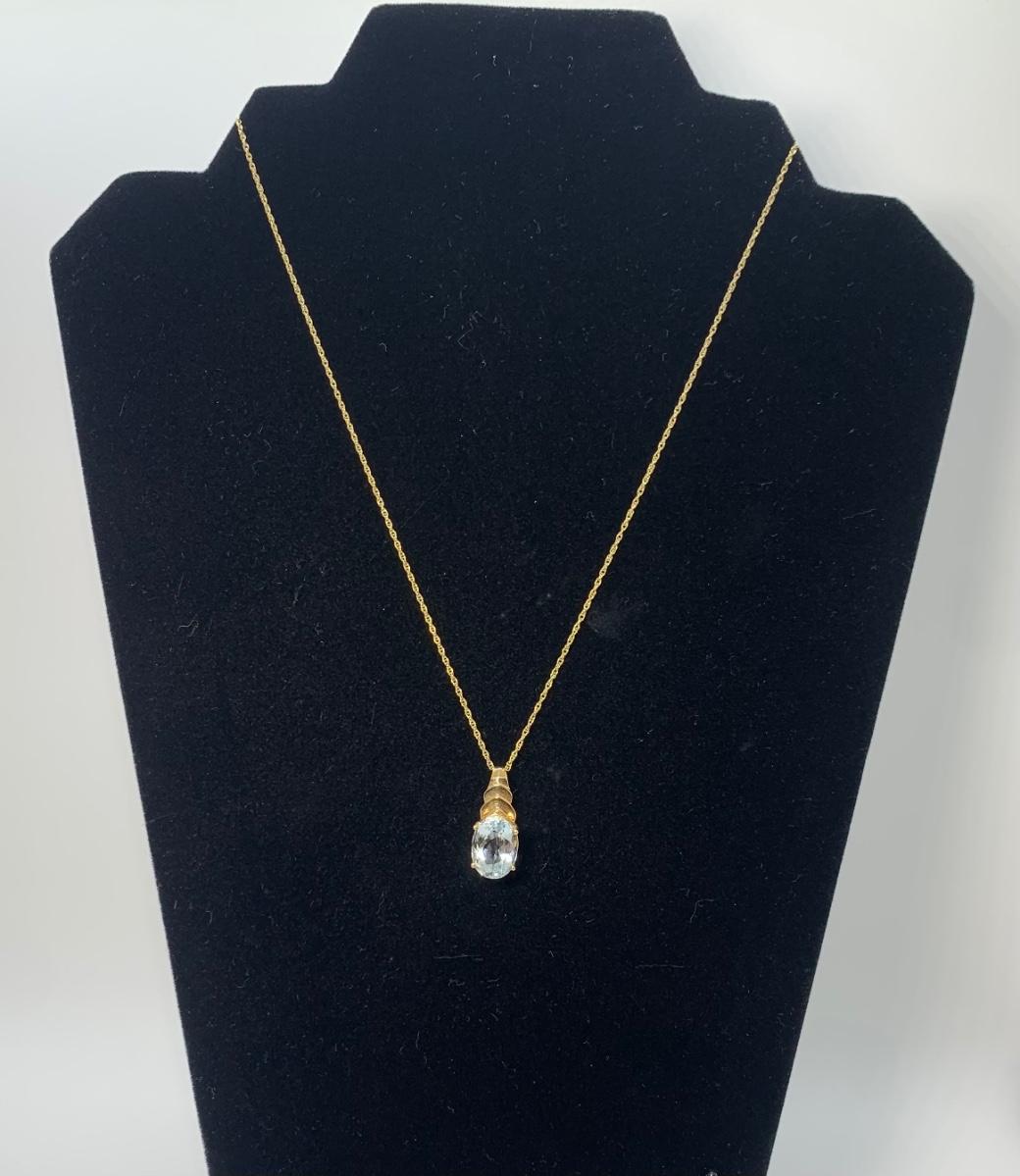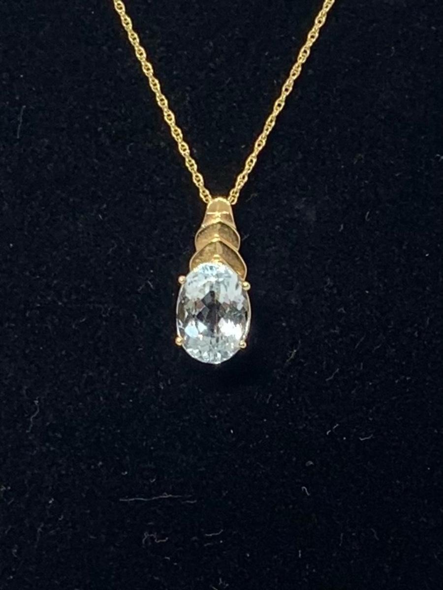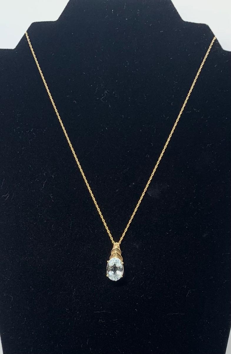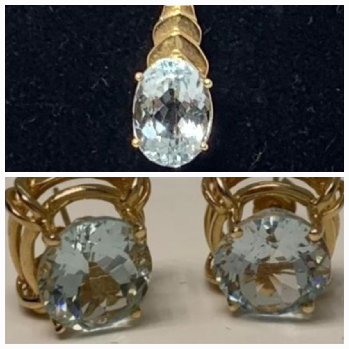 Tw 5g 14k Aqua Marine Necklace & Pierced Earrings Set  18.5" l chain